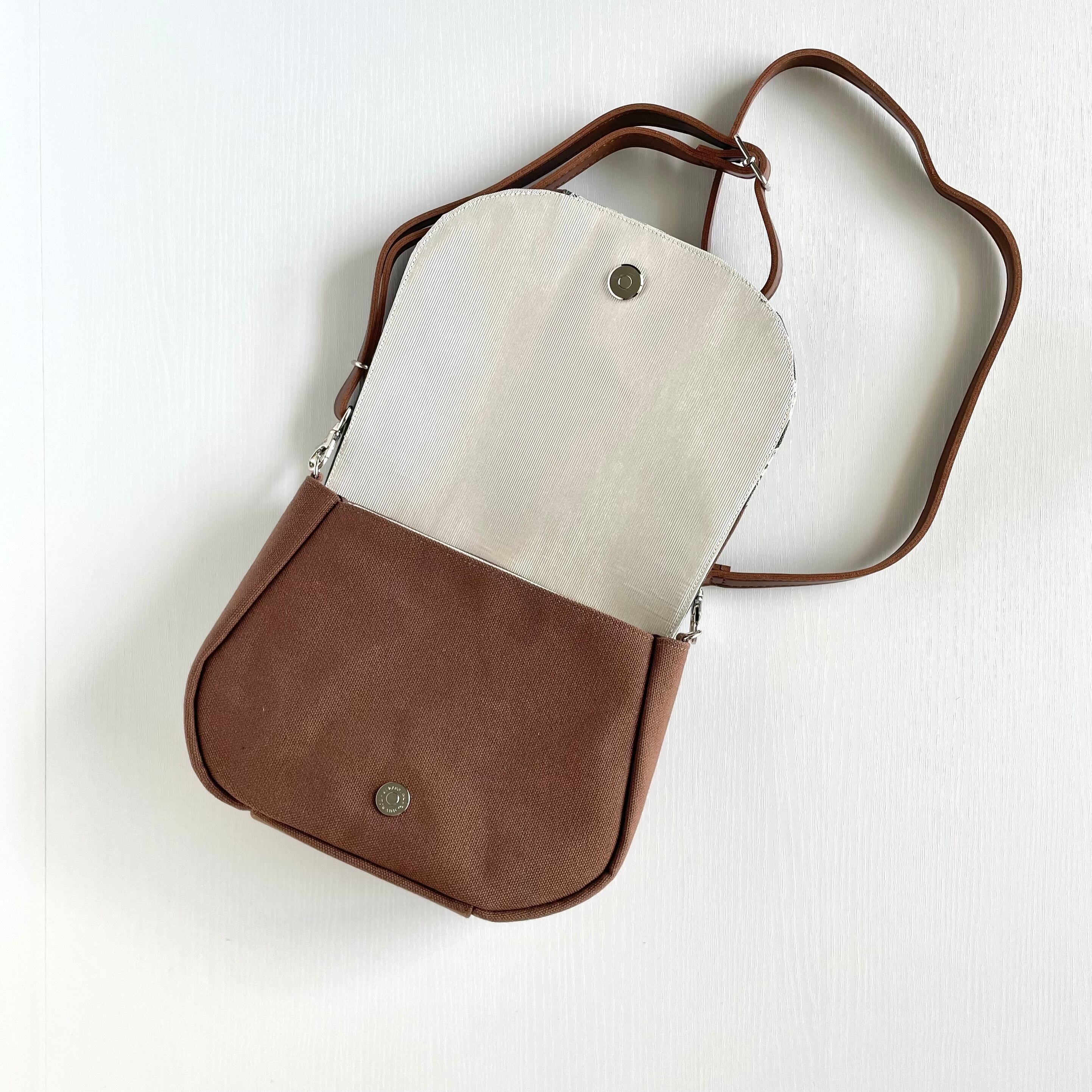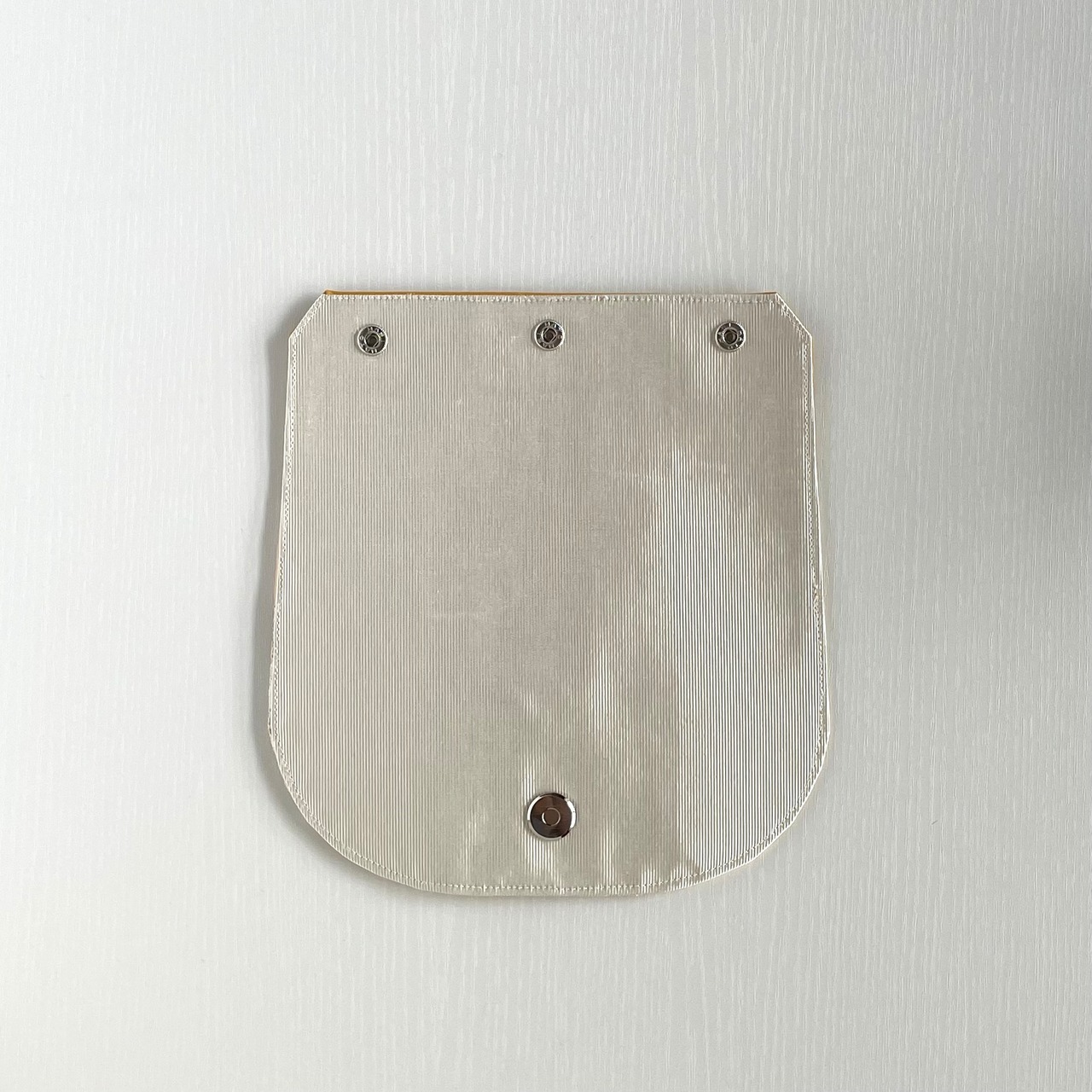 フラップ外面は帆布11号生地、内側は本体と同じレーヨンシャンタン生地を使用。
