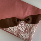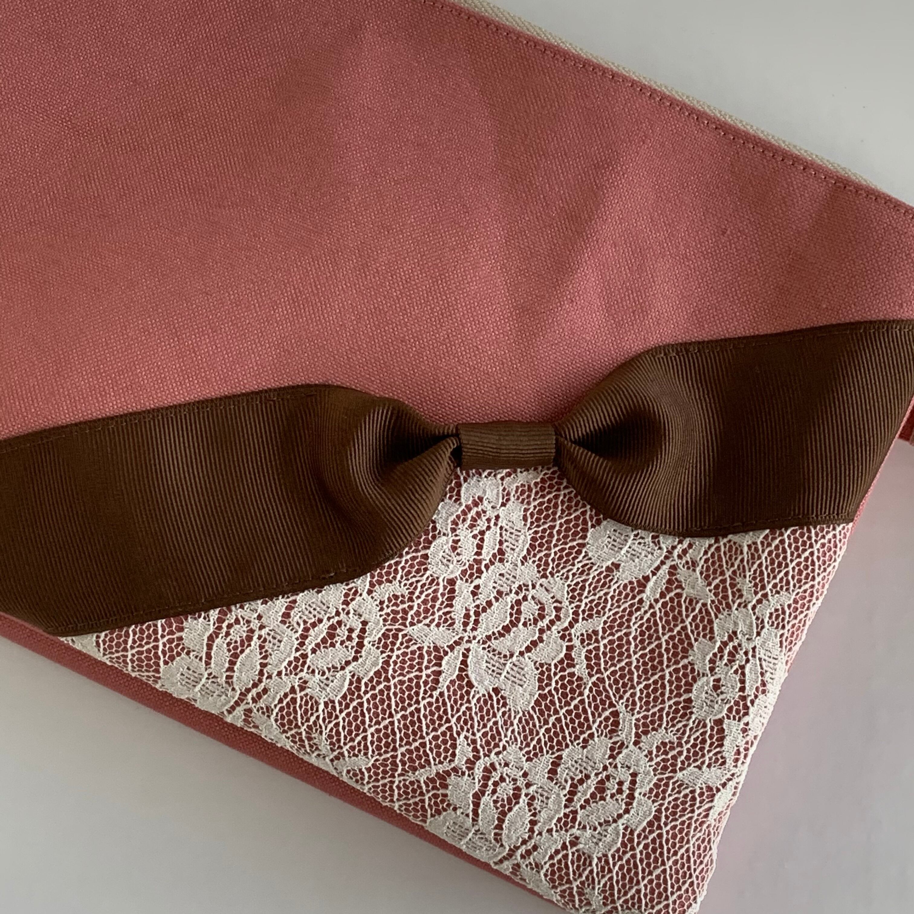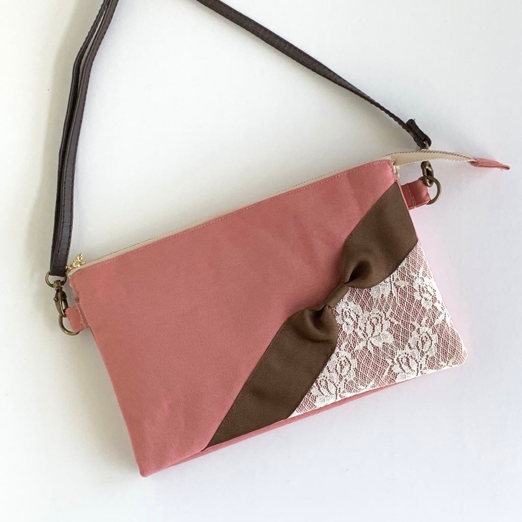 ○帆布生地にリボンでラッピングしたかのようなリボンショルダーポーチ。