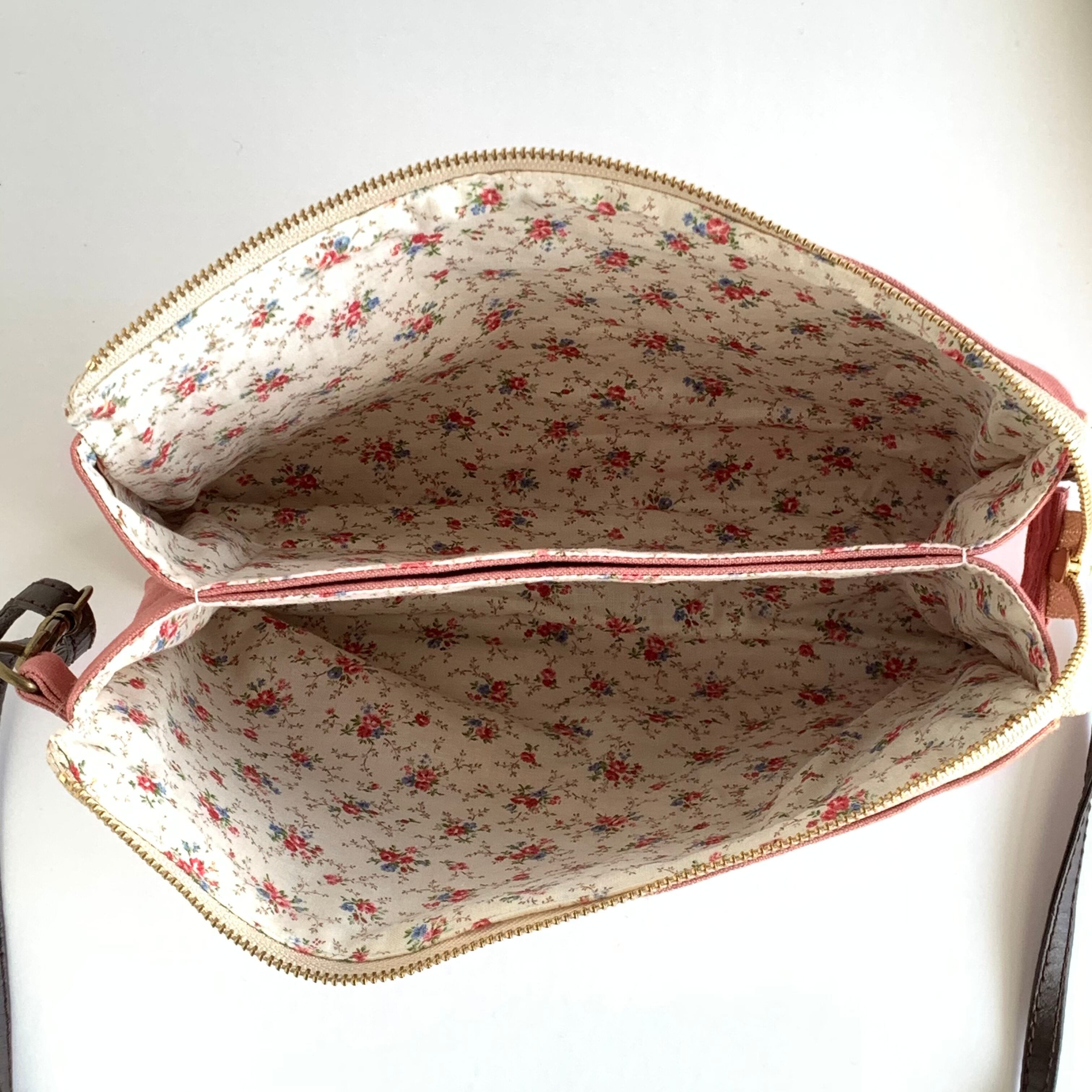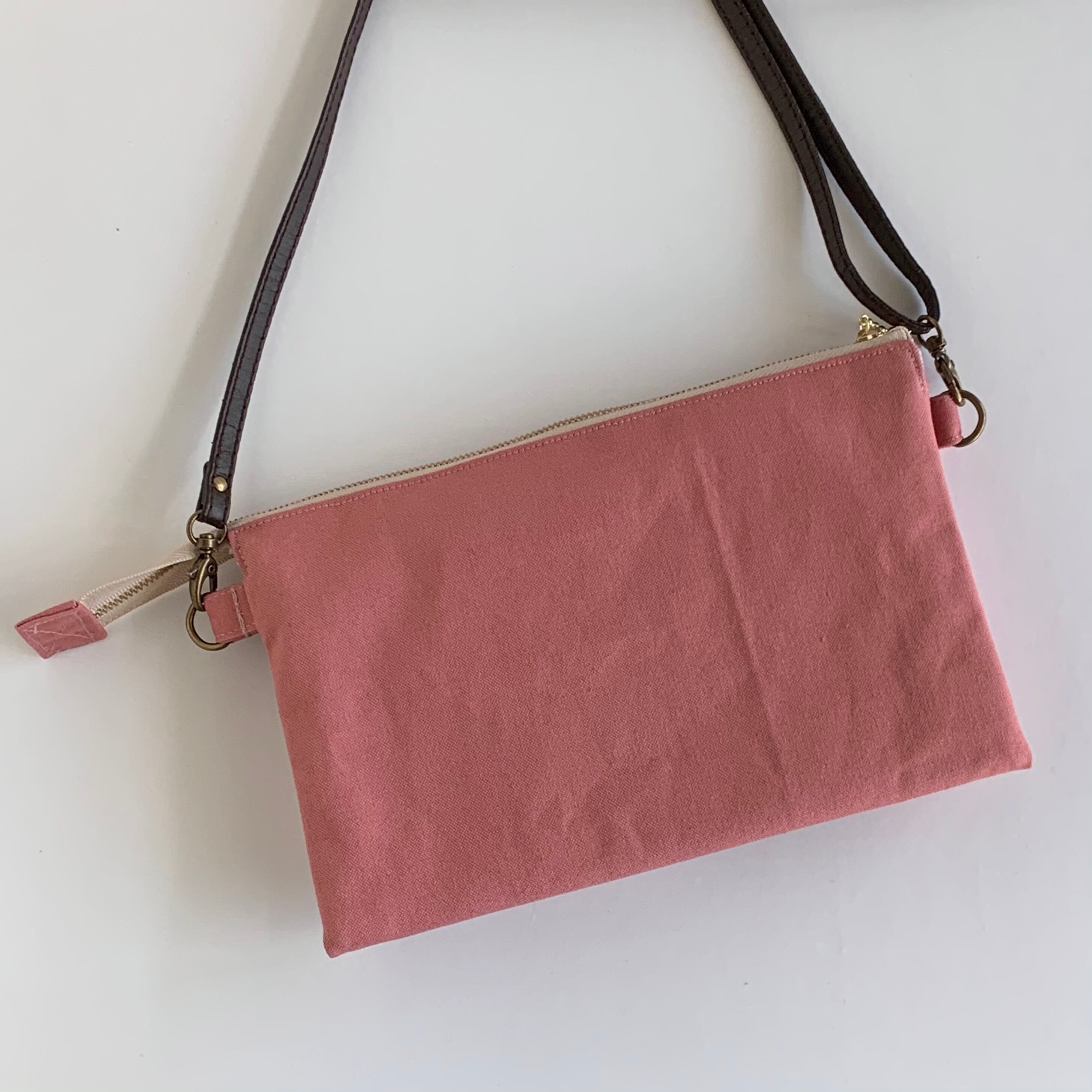 お買い物や子供のお迎え、ショルダー紐を外せば大きめのポーチとしてもお使いいただけます。