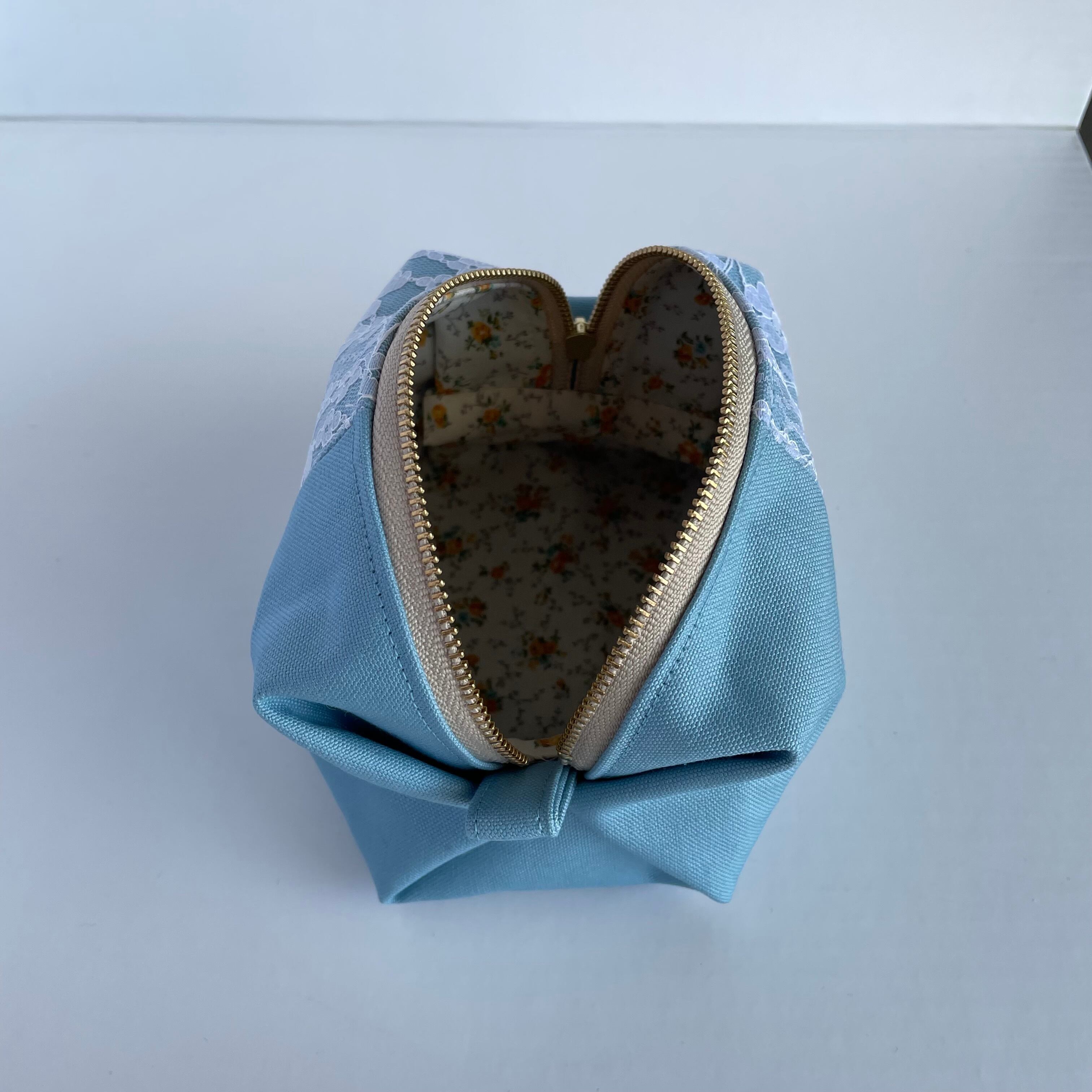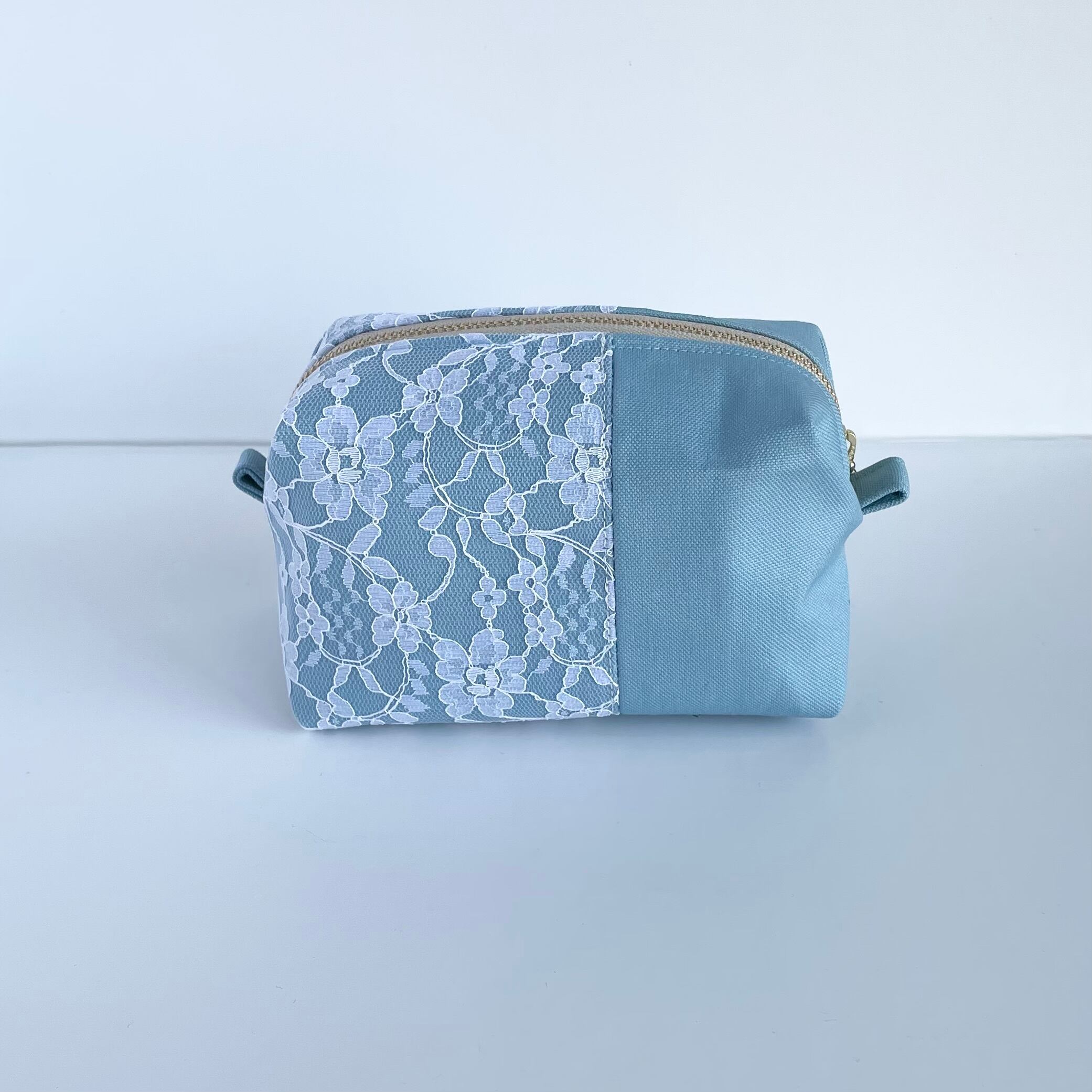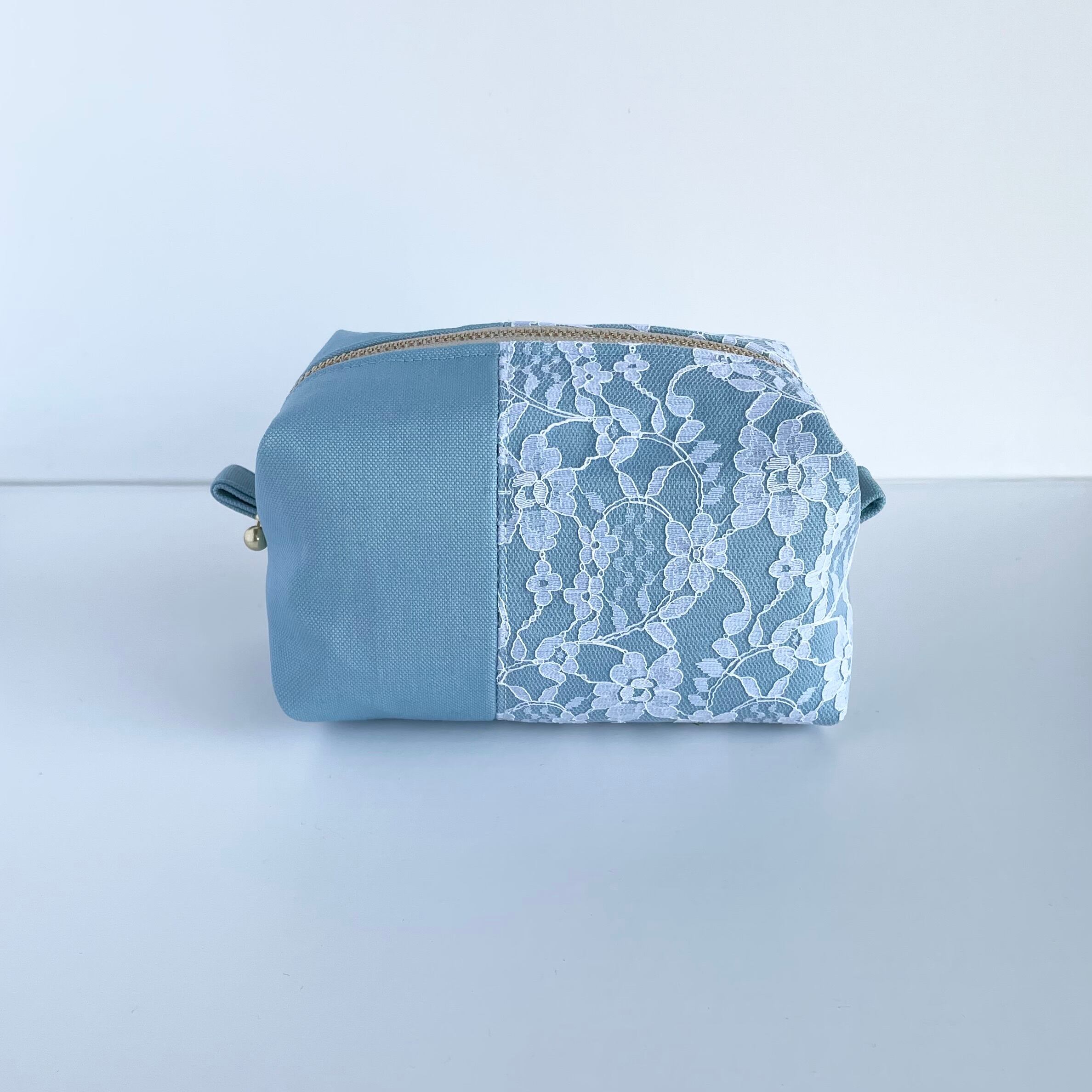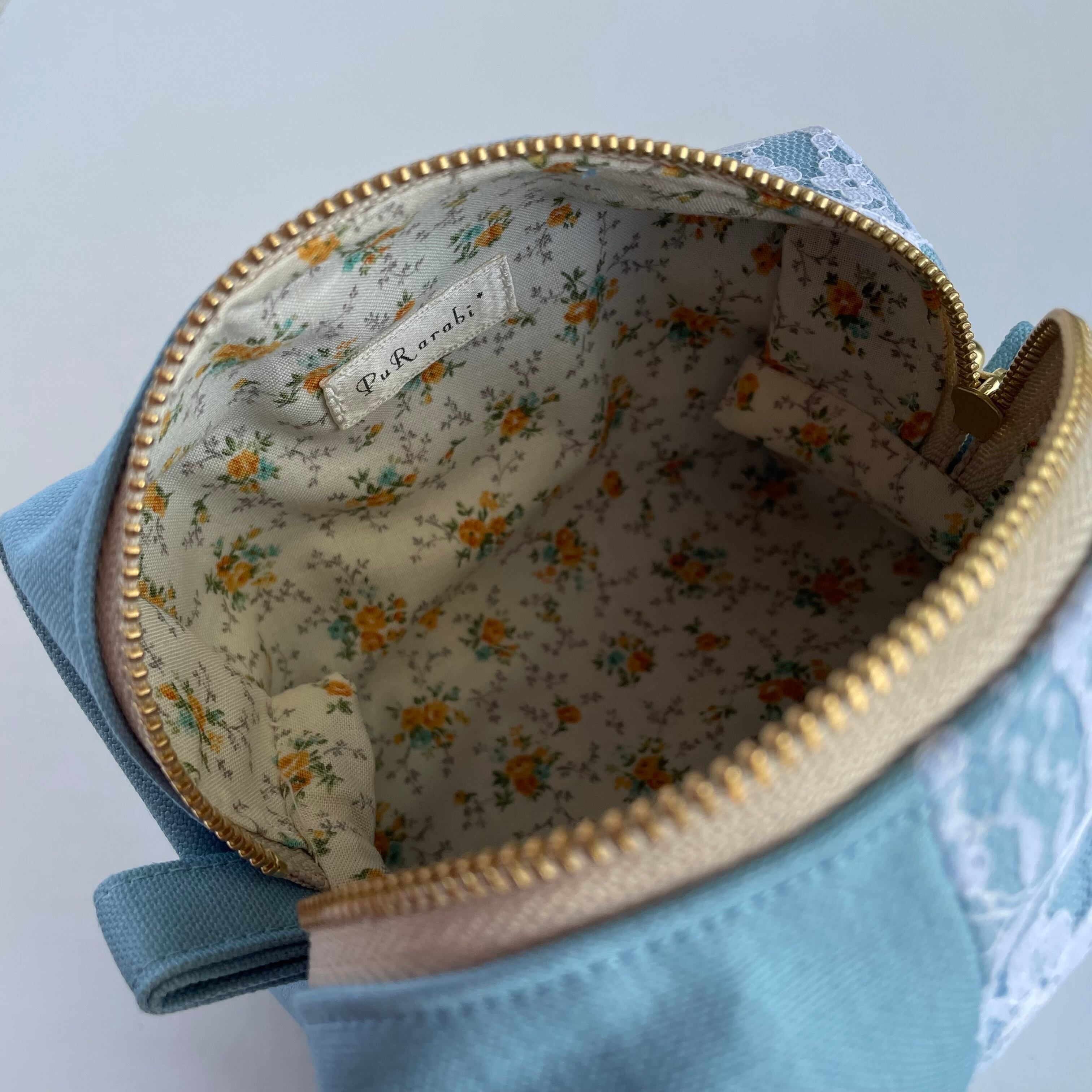 ころんと可愛い大人のキャラメルレースポーチ(ブルー系)