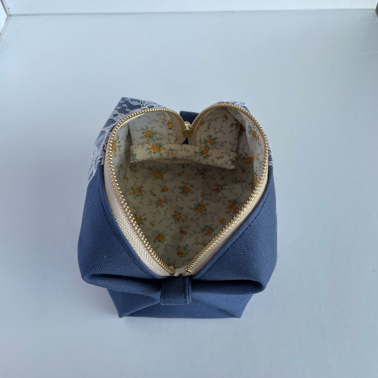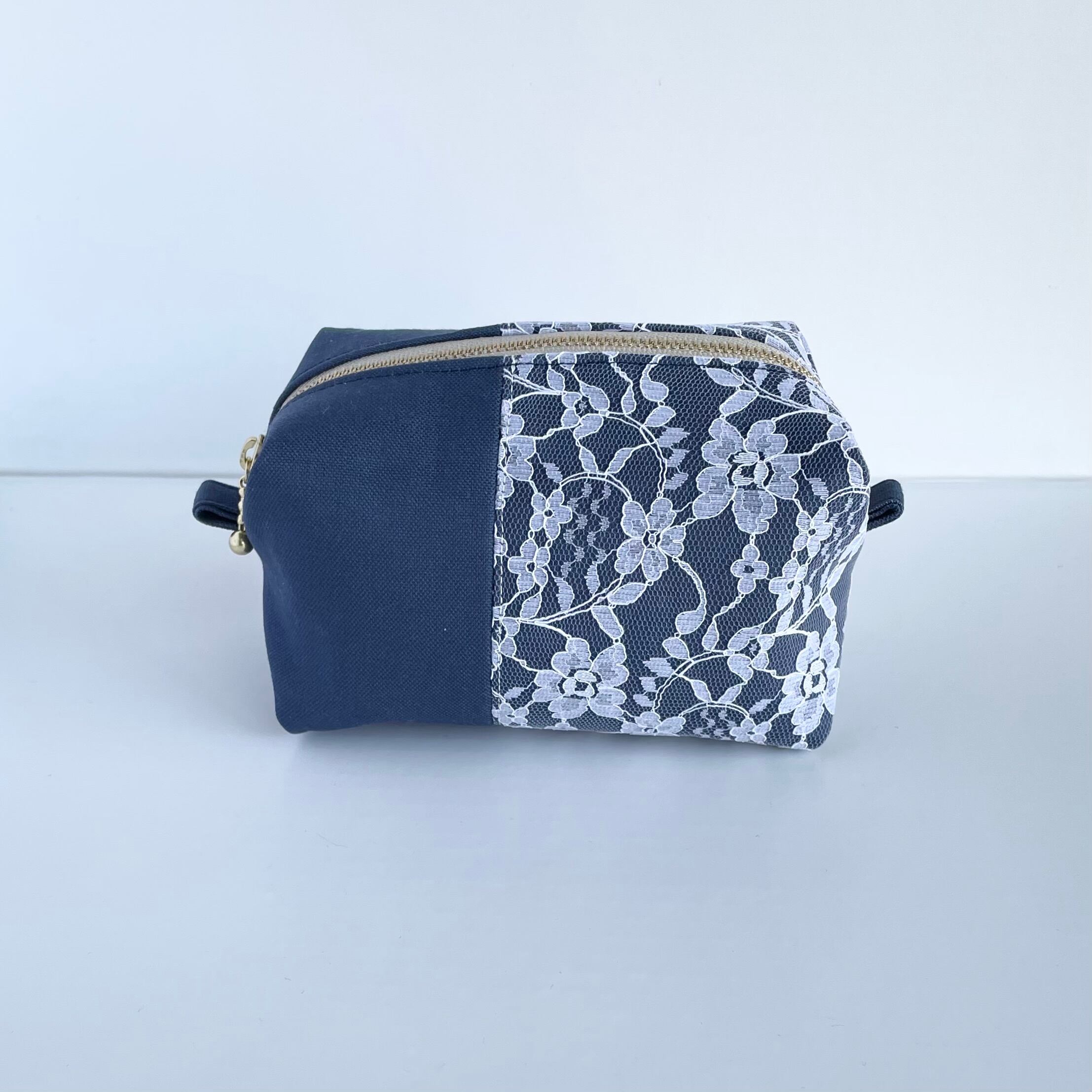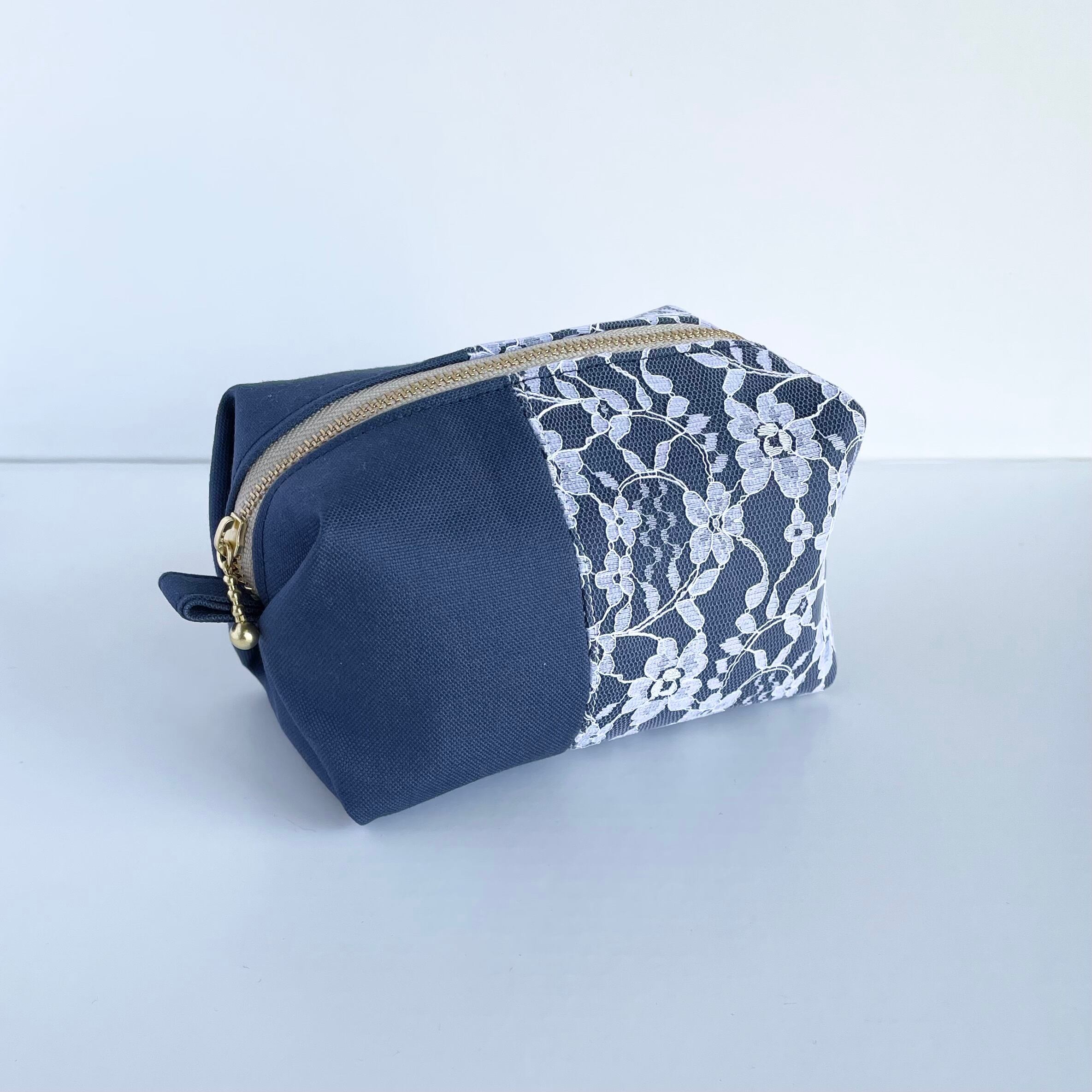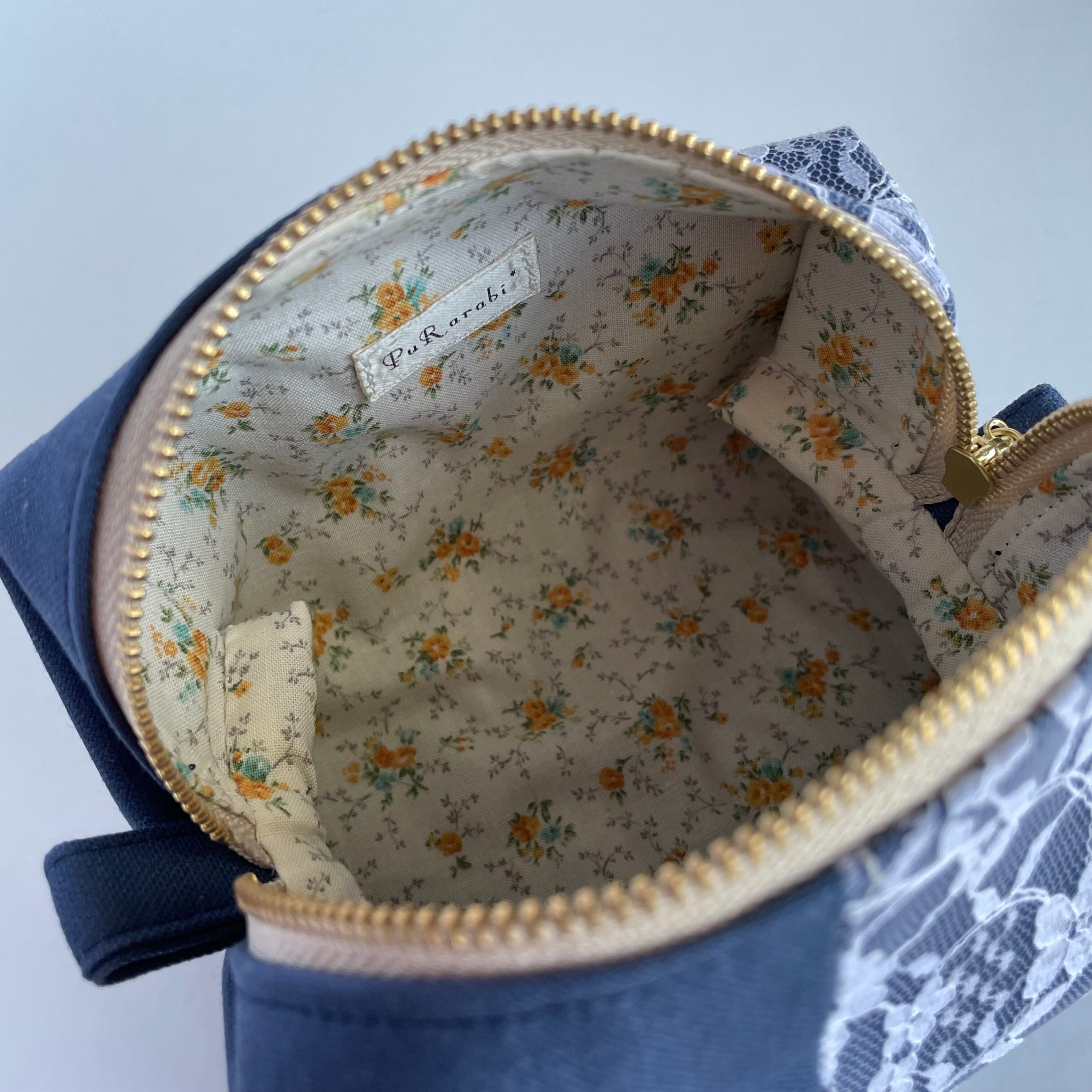 ころんと可愛い大人のキャラメルレースポーチ(ブルー系)