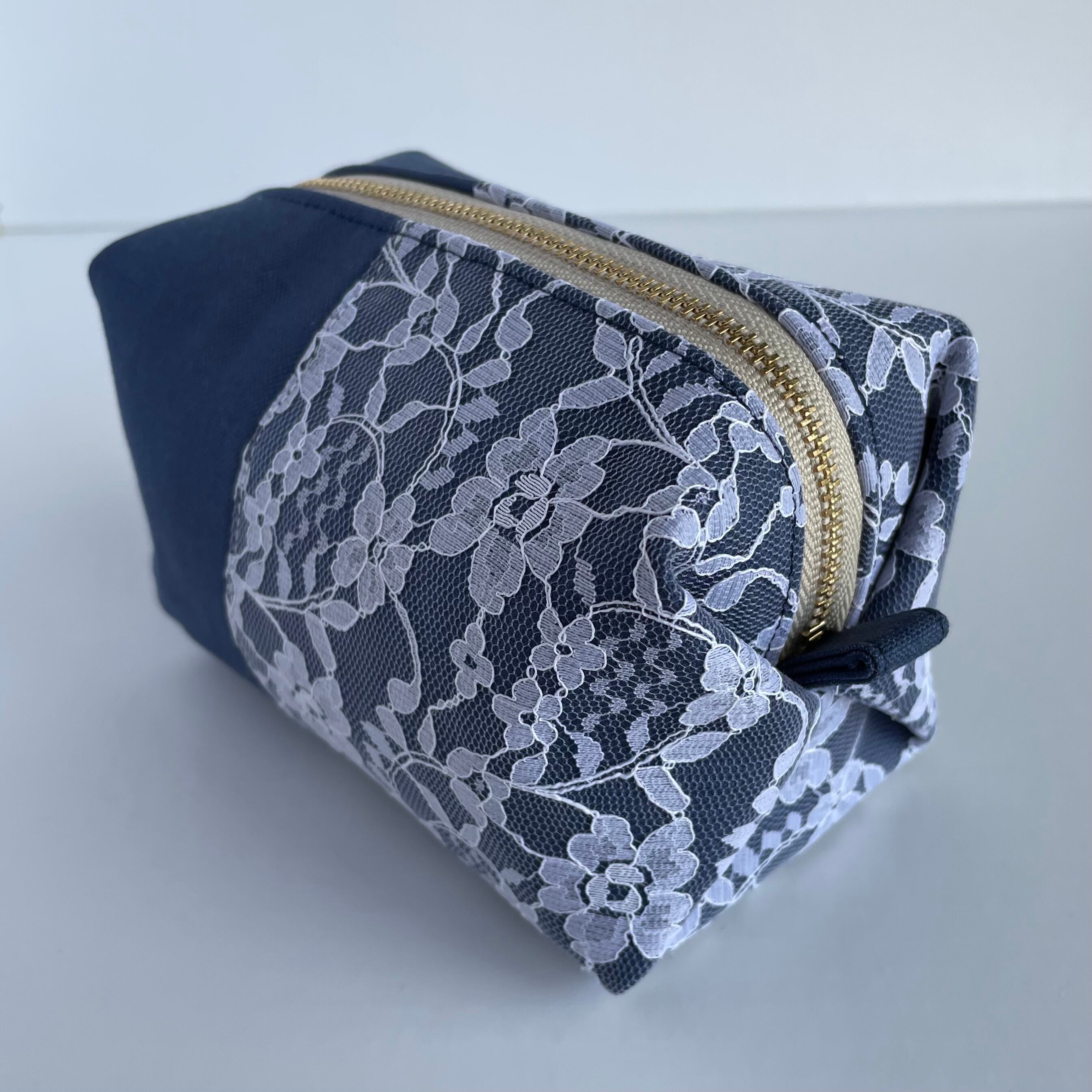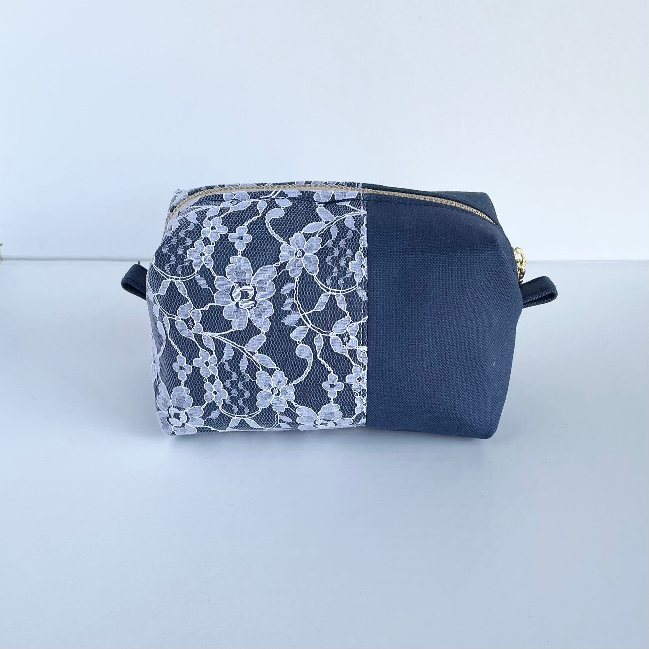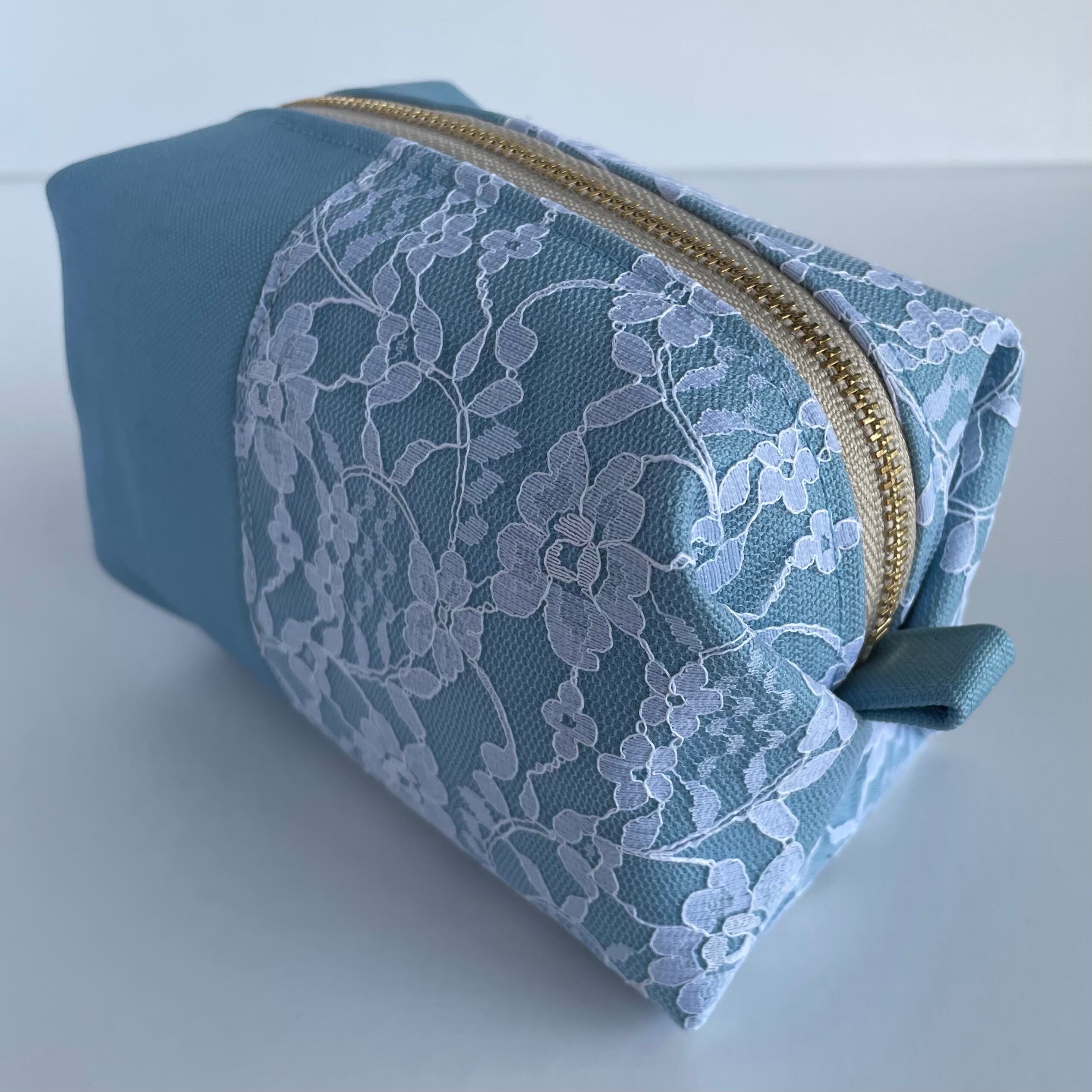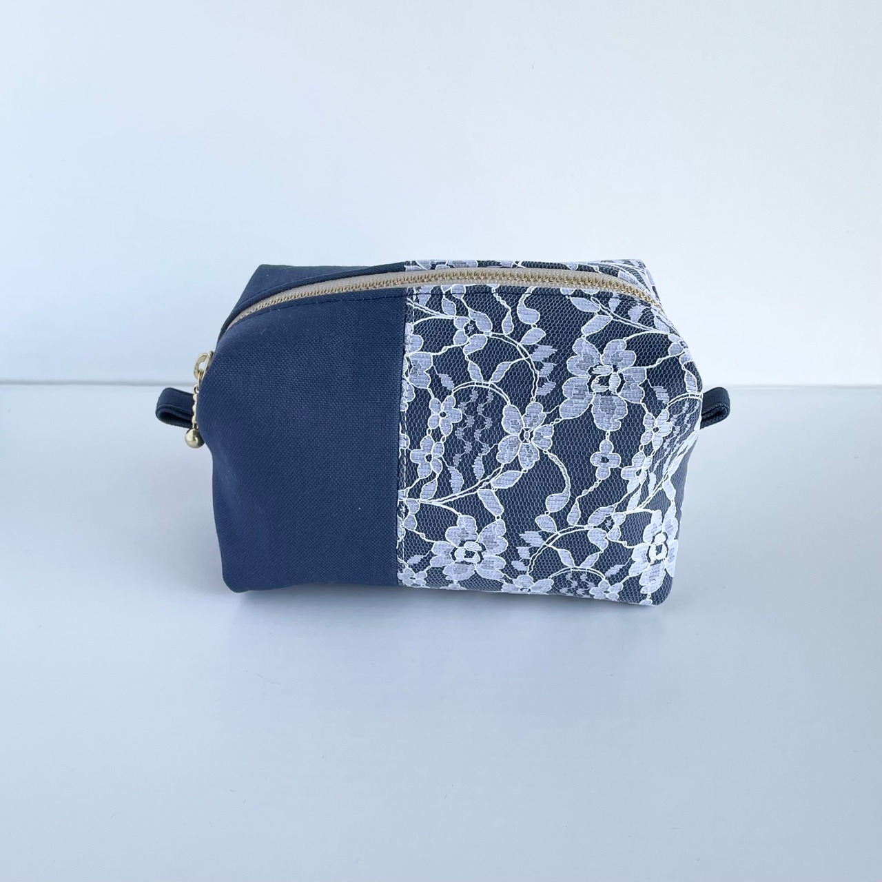ころんと可愛い大人のキャラメルレースポーチ(ブルー系)