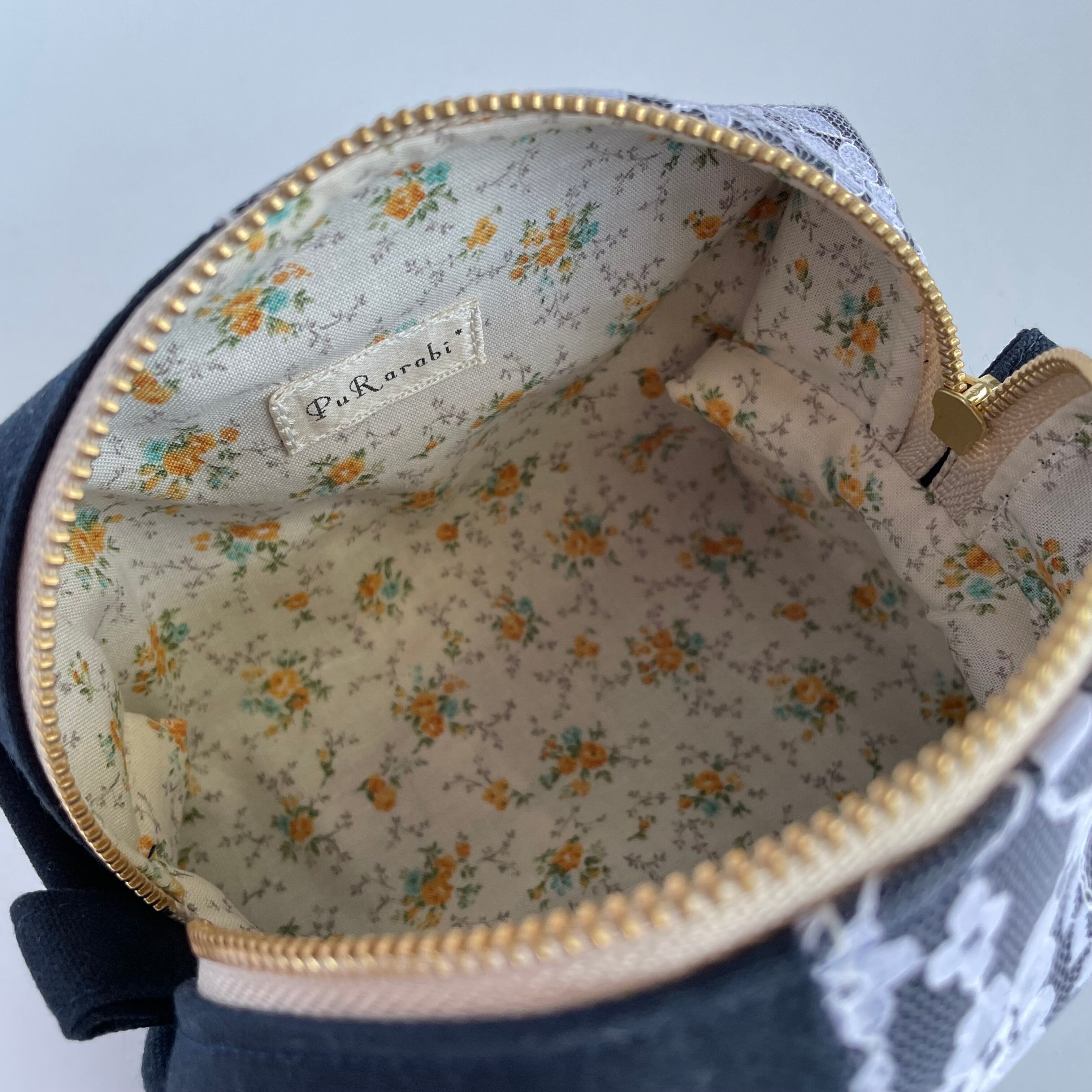 ころんとしたシルエットが可愛い、大人のキャラメルレースポーチ