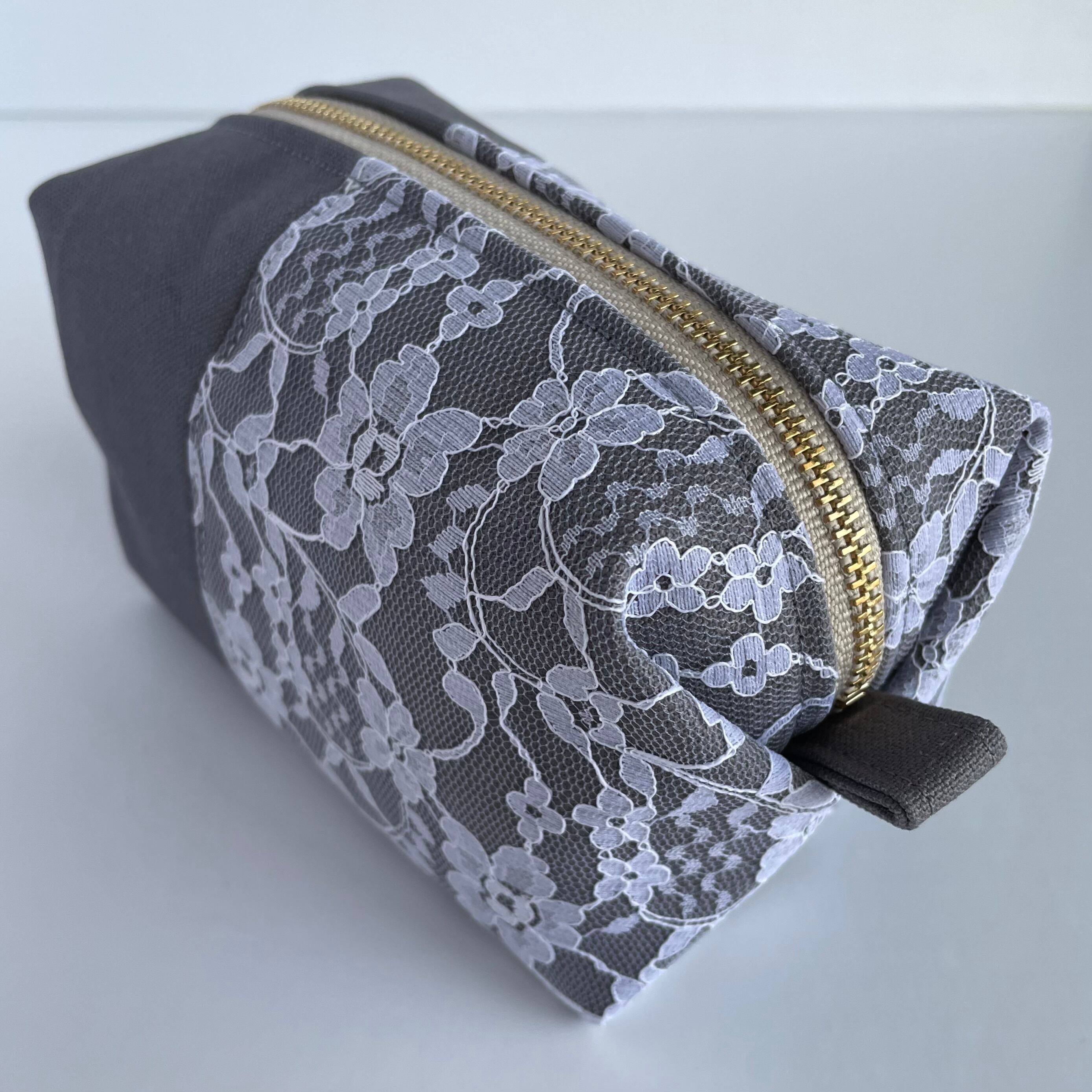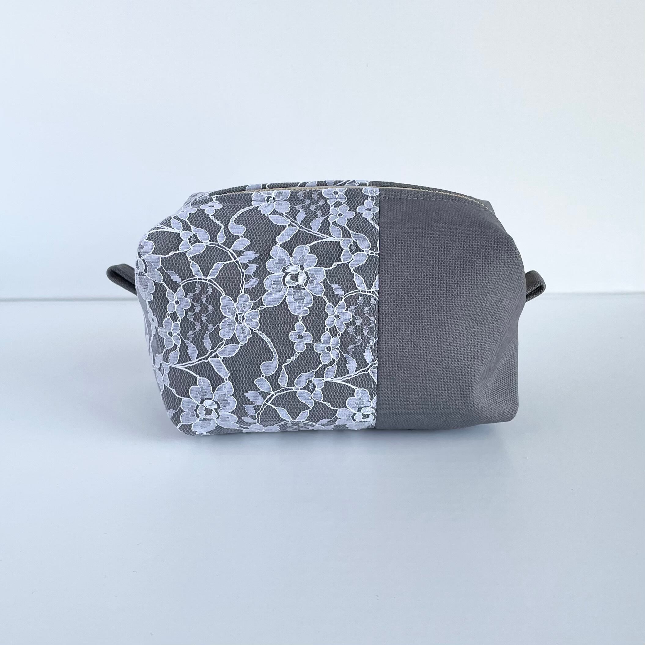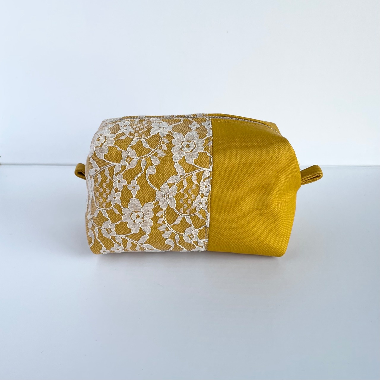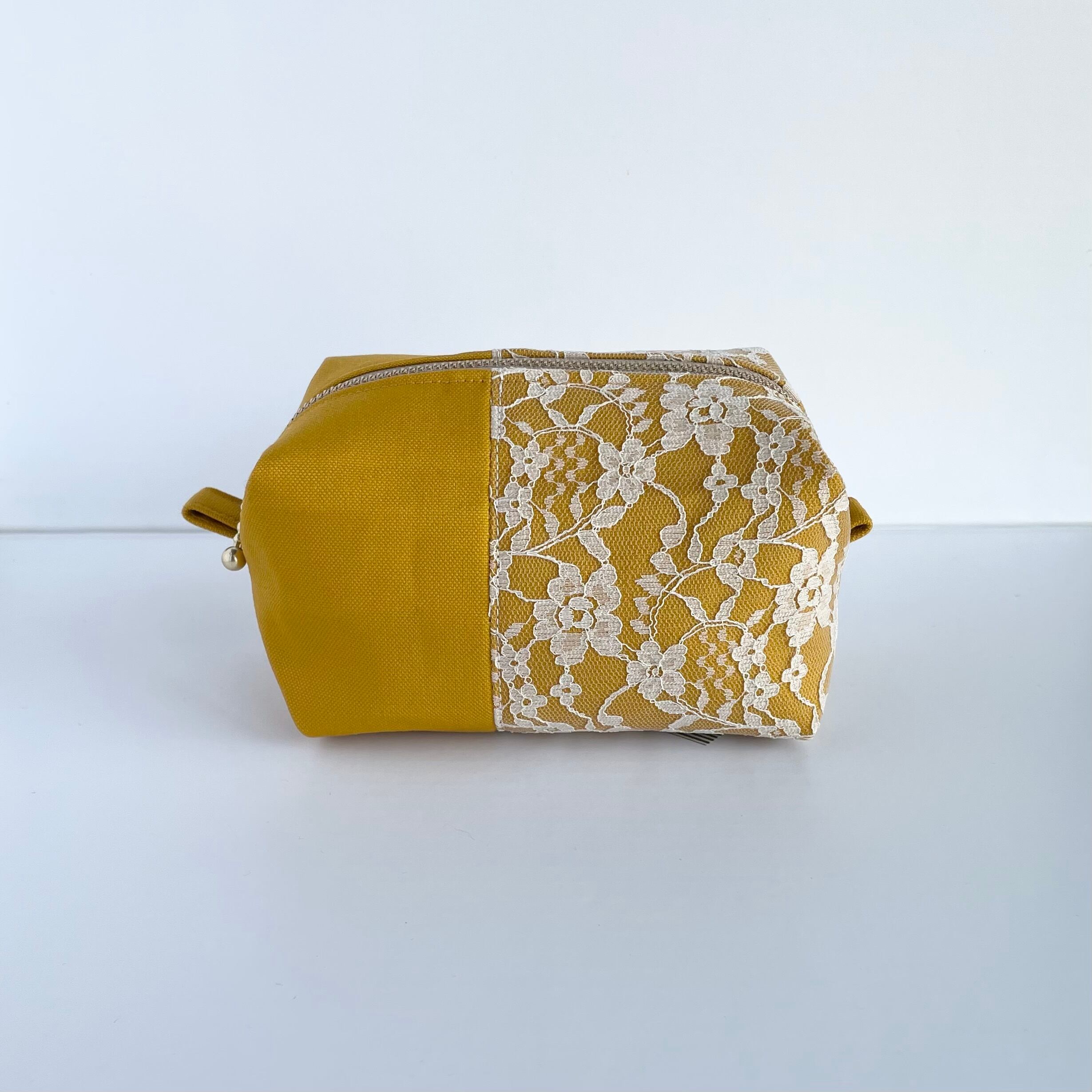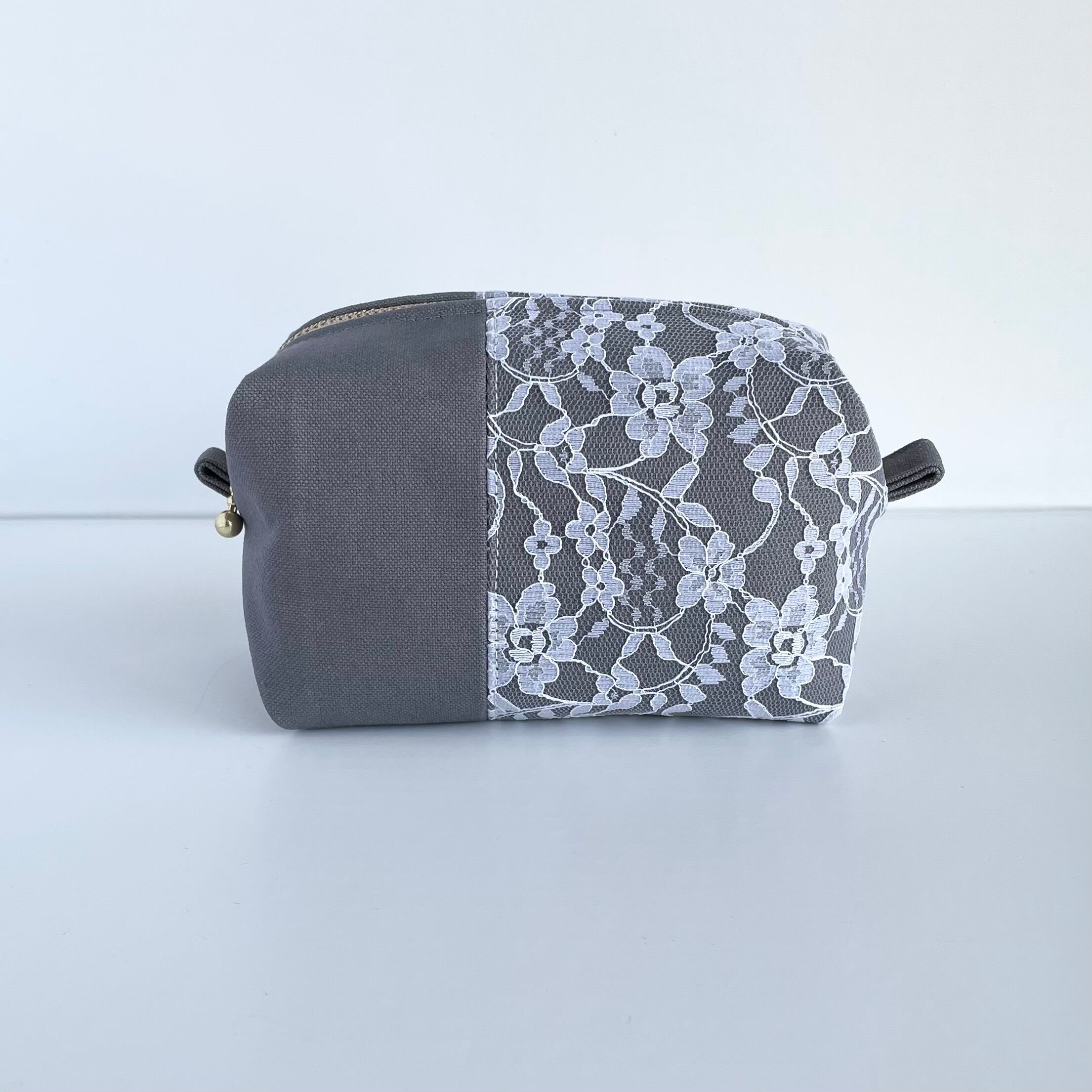 ○立体的なフォルムでキャラメルの包み紙に似ているキャラメルポーチ。帆布生地とレースを合わせシンプルながらも可愛さを忘れないデザインに仕上げました。
