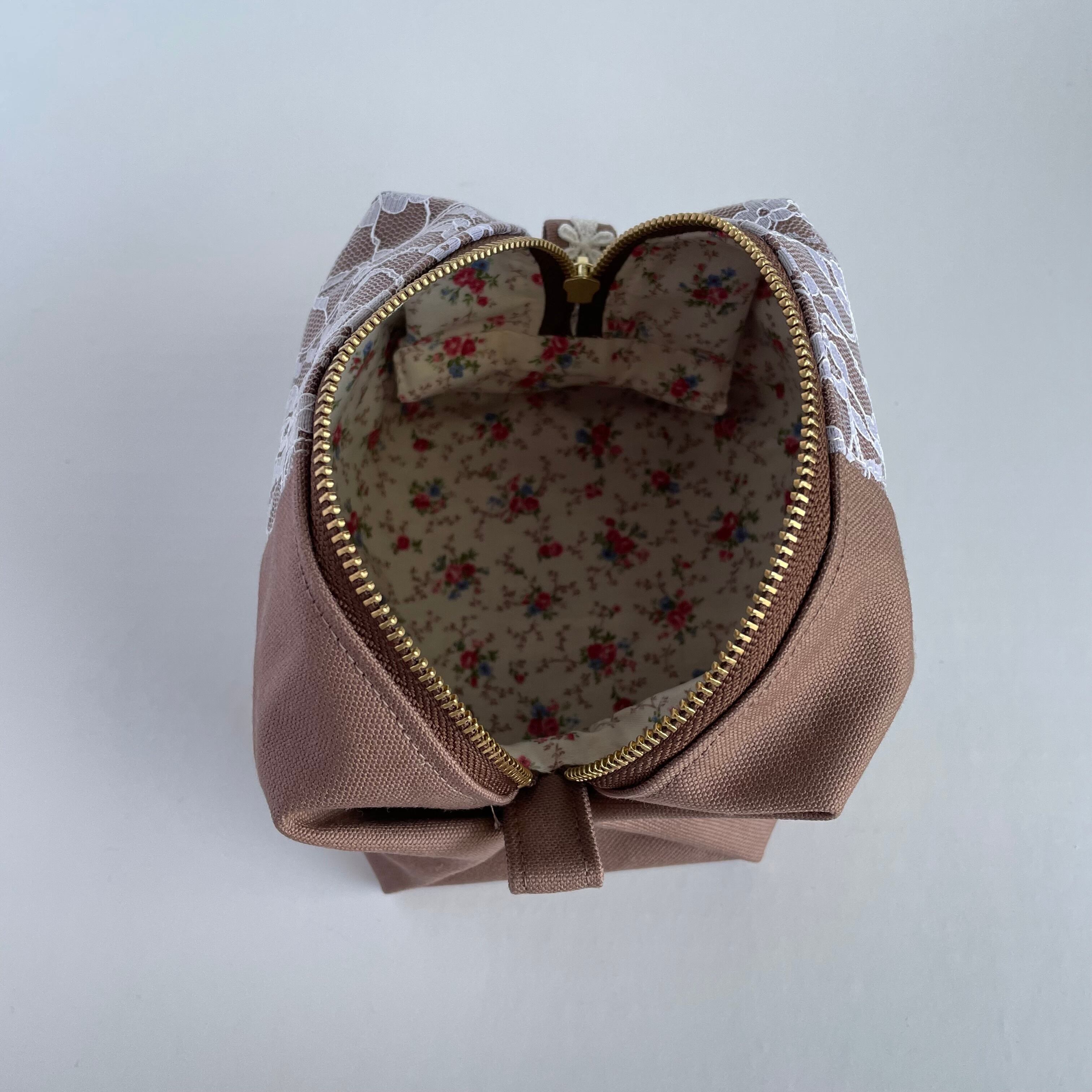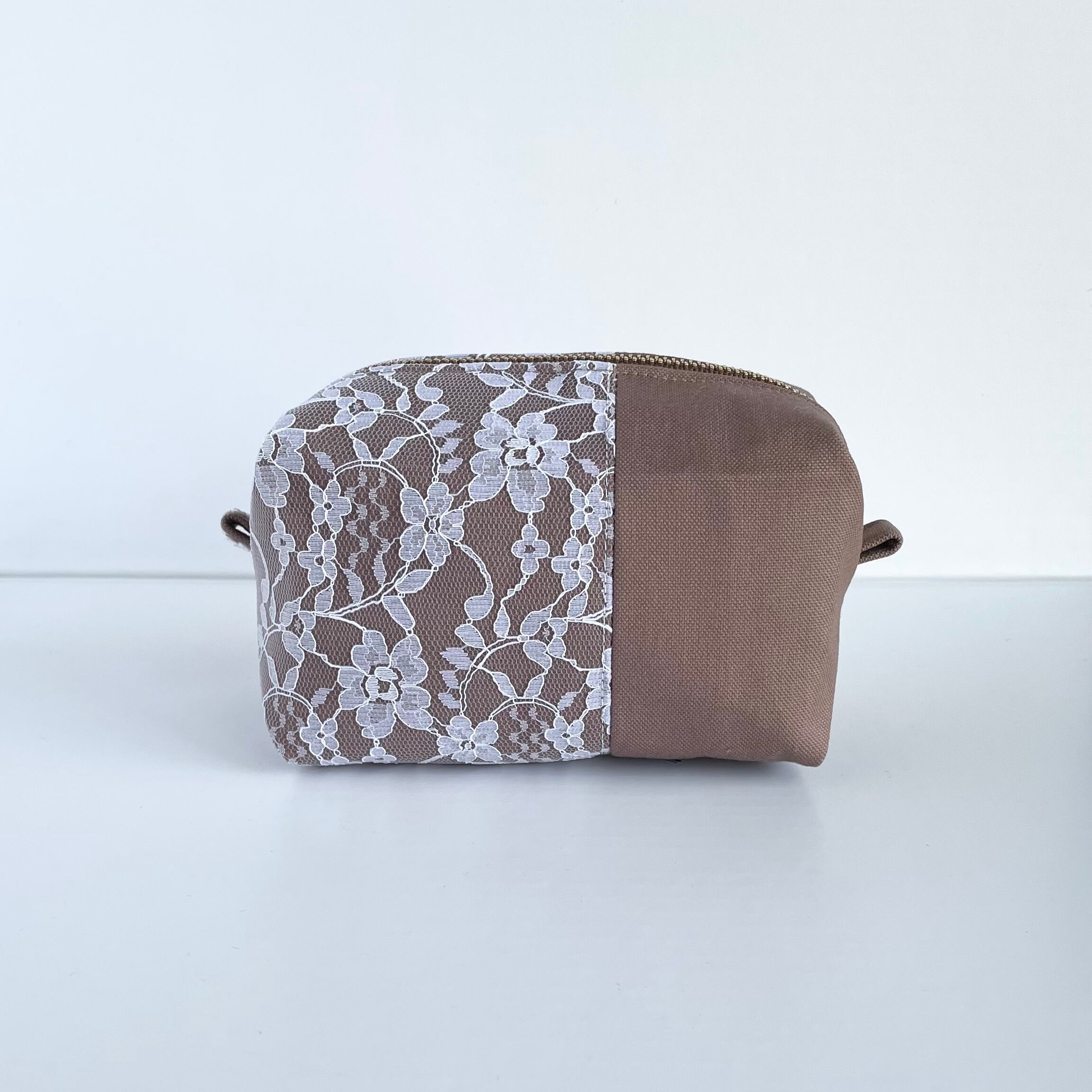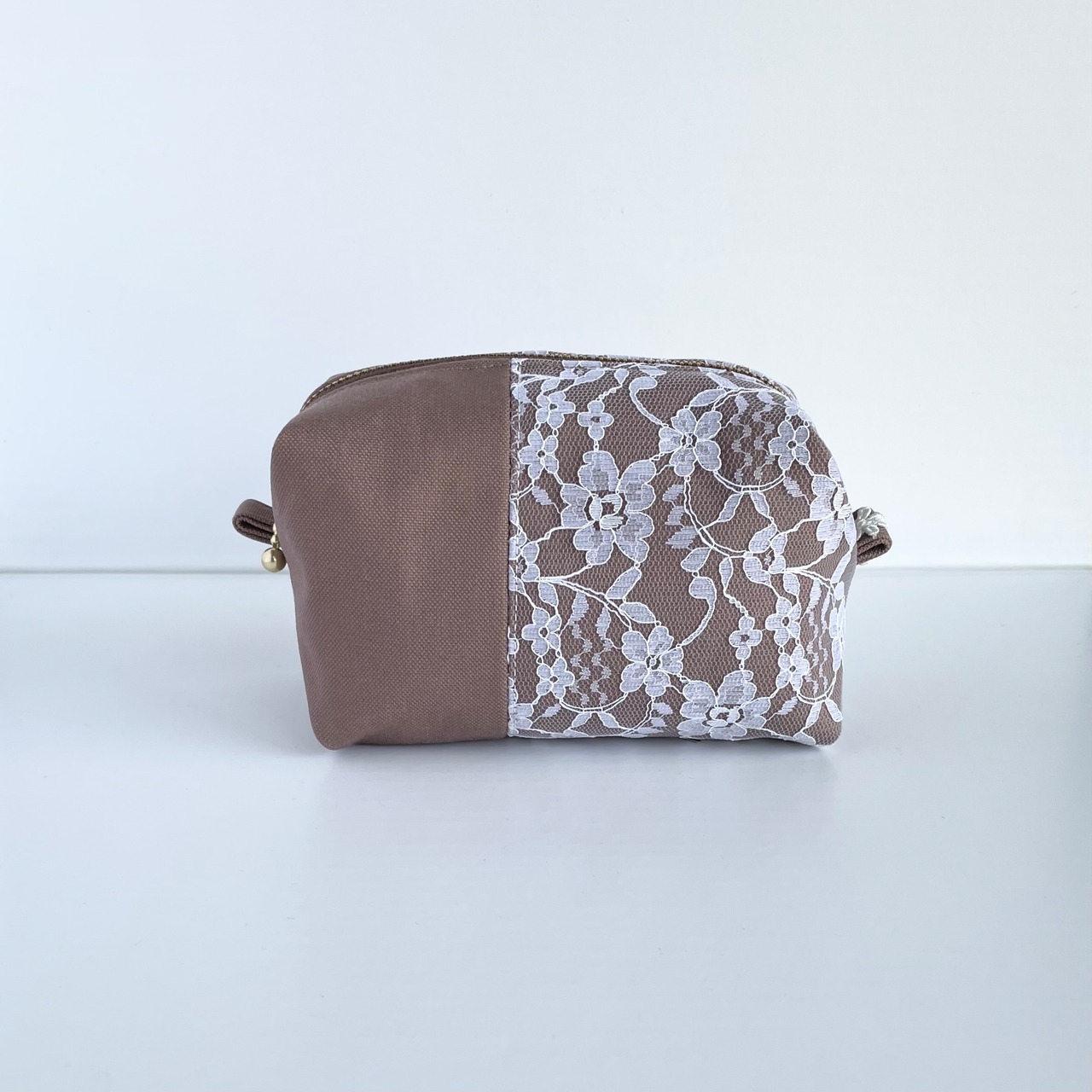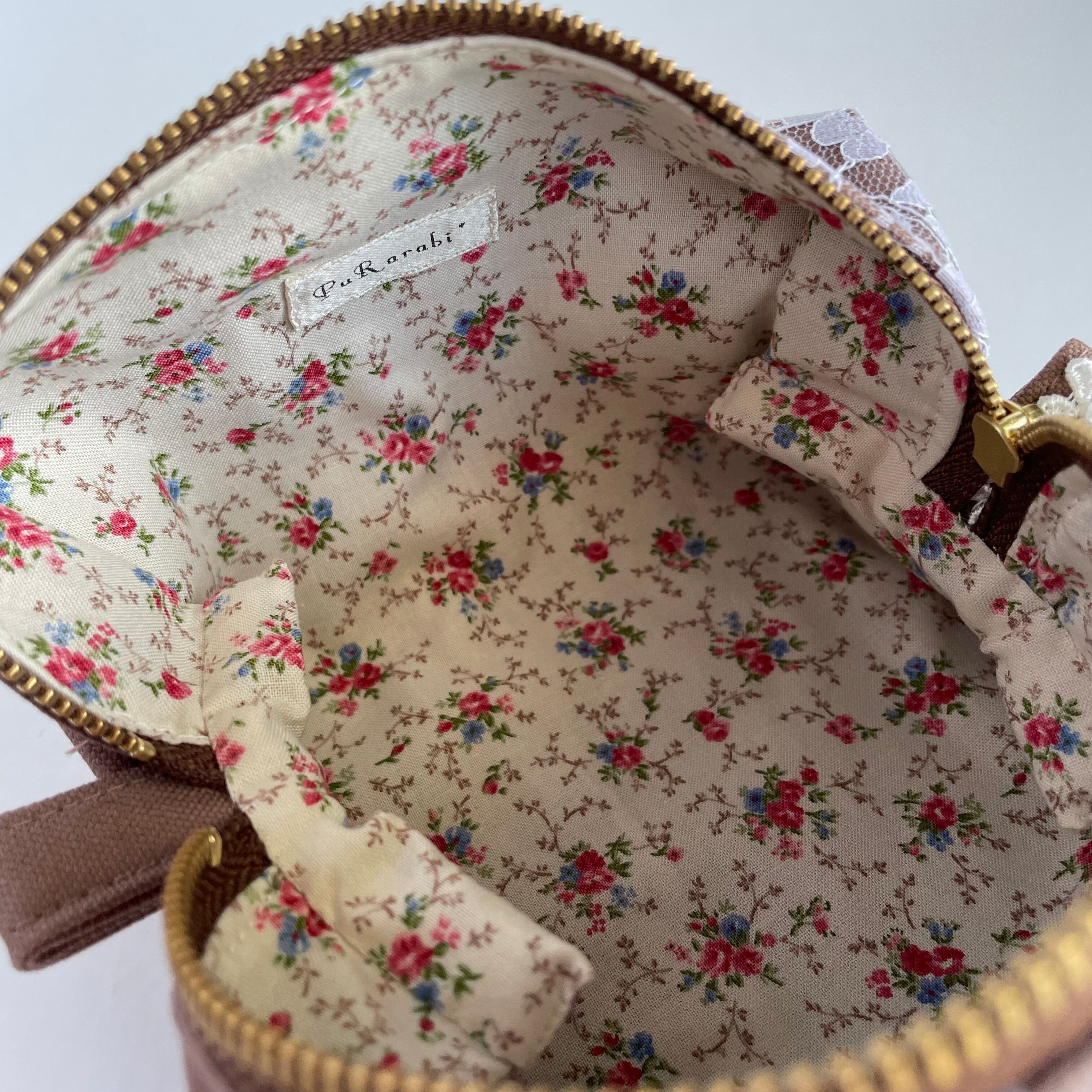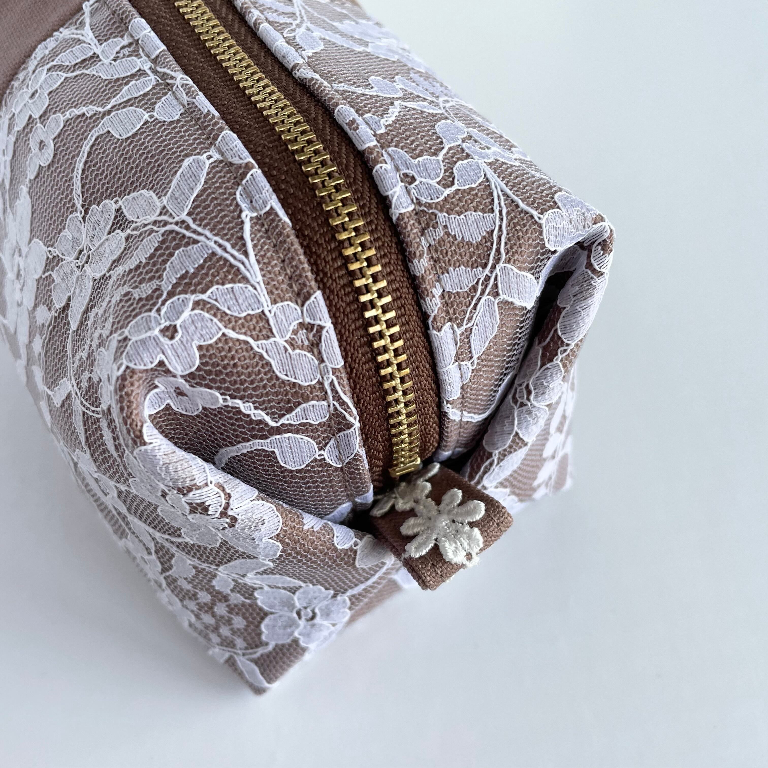 ころんとしたシルエットが可愛い、大人のキャラメルレースポーチ