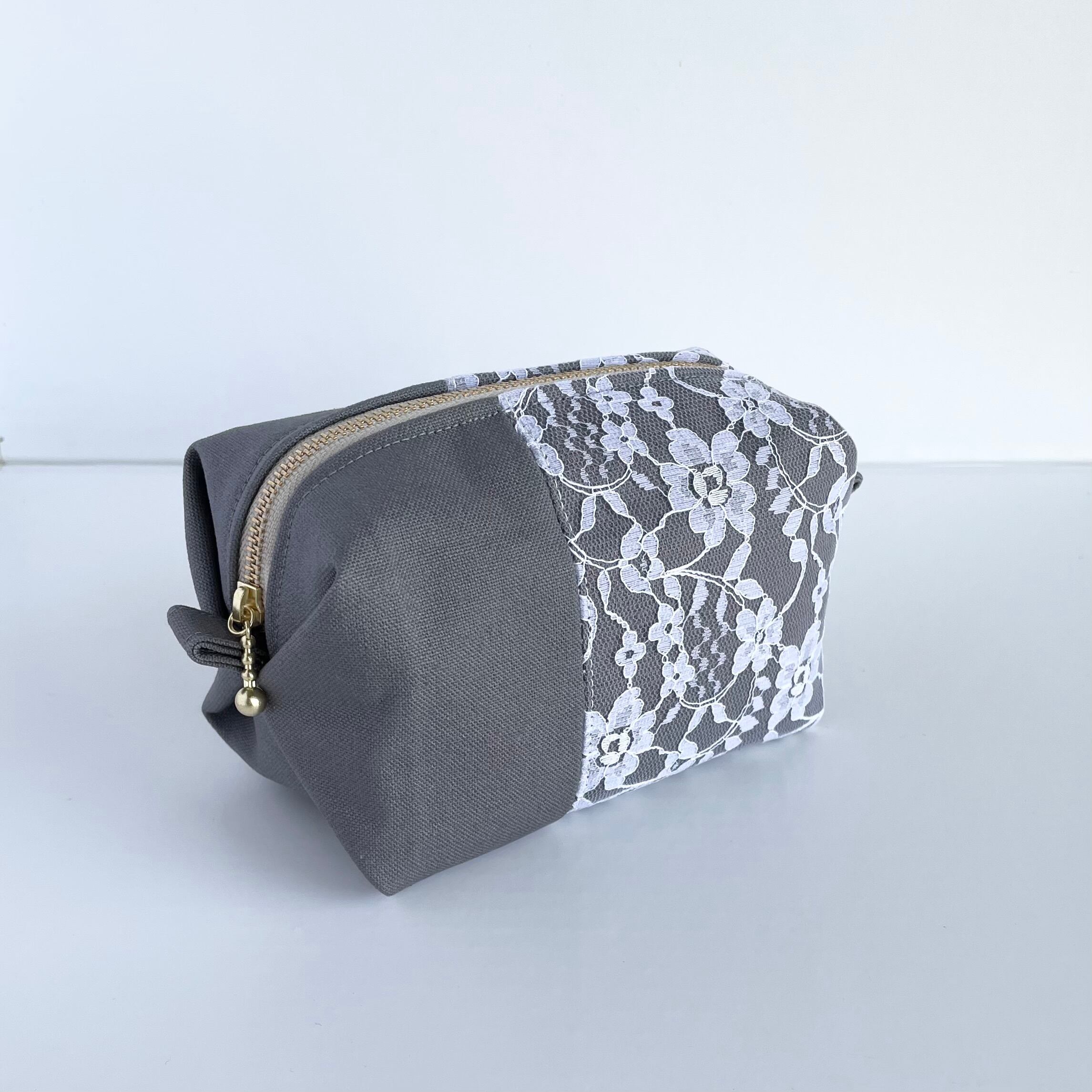 ころんと可愛い大人のキャラメルレースポーチ(グレー、黄、ブラウン)