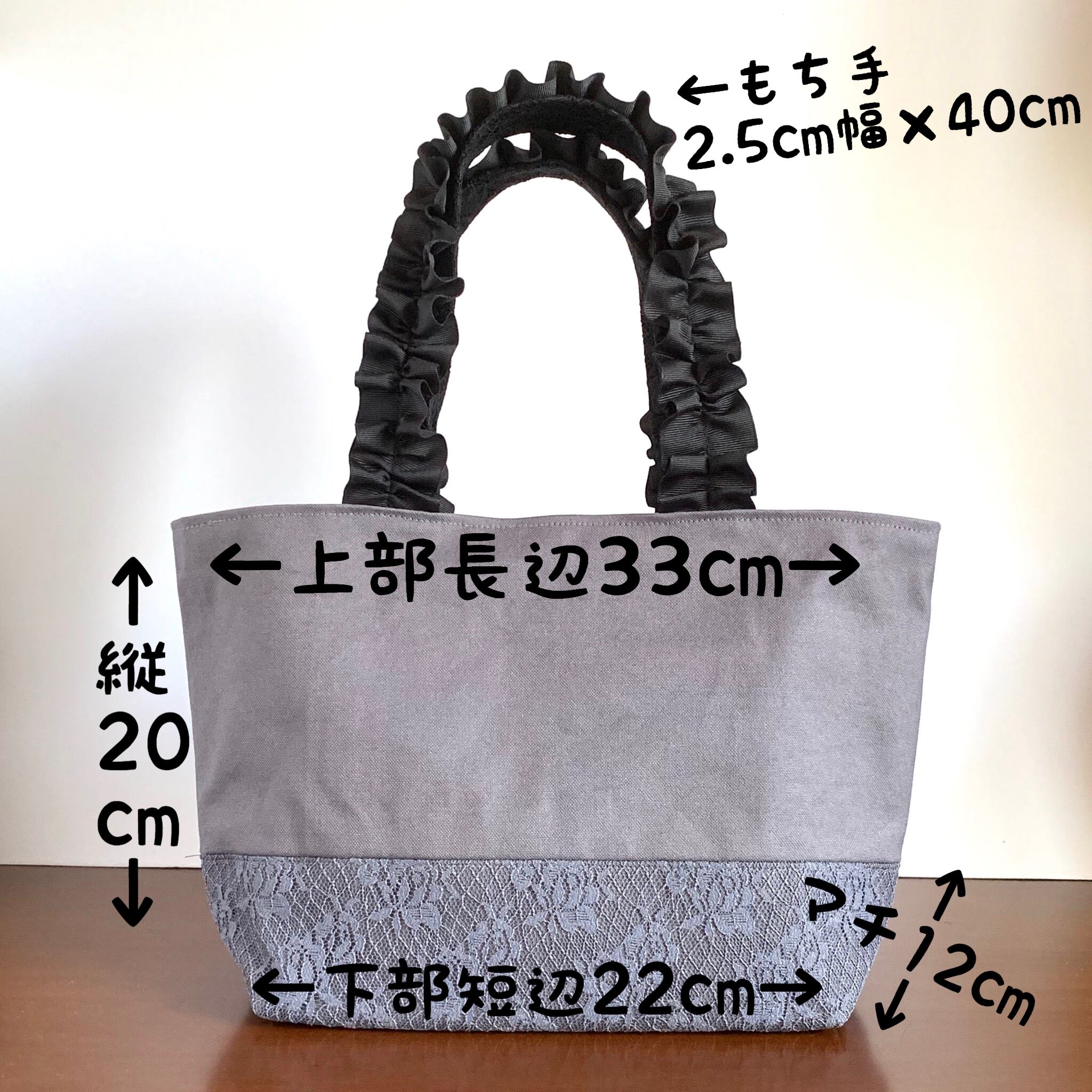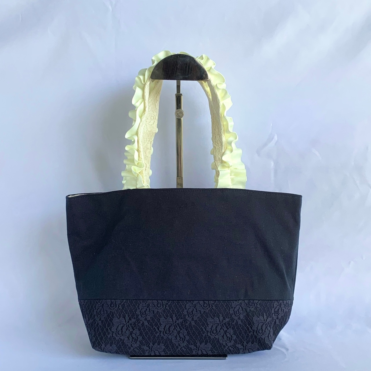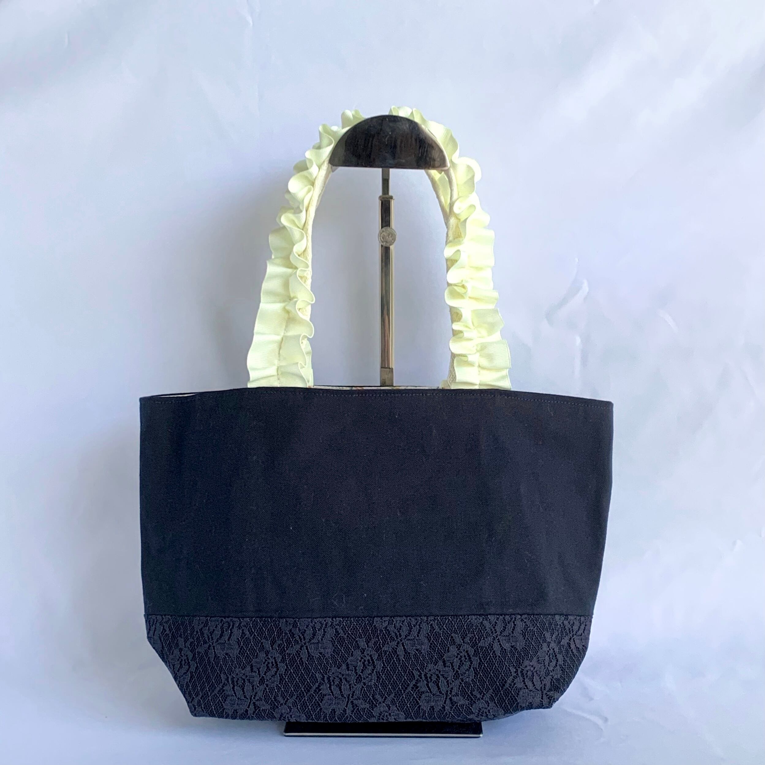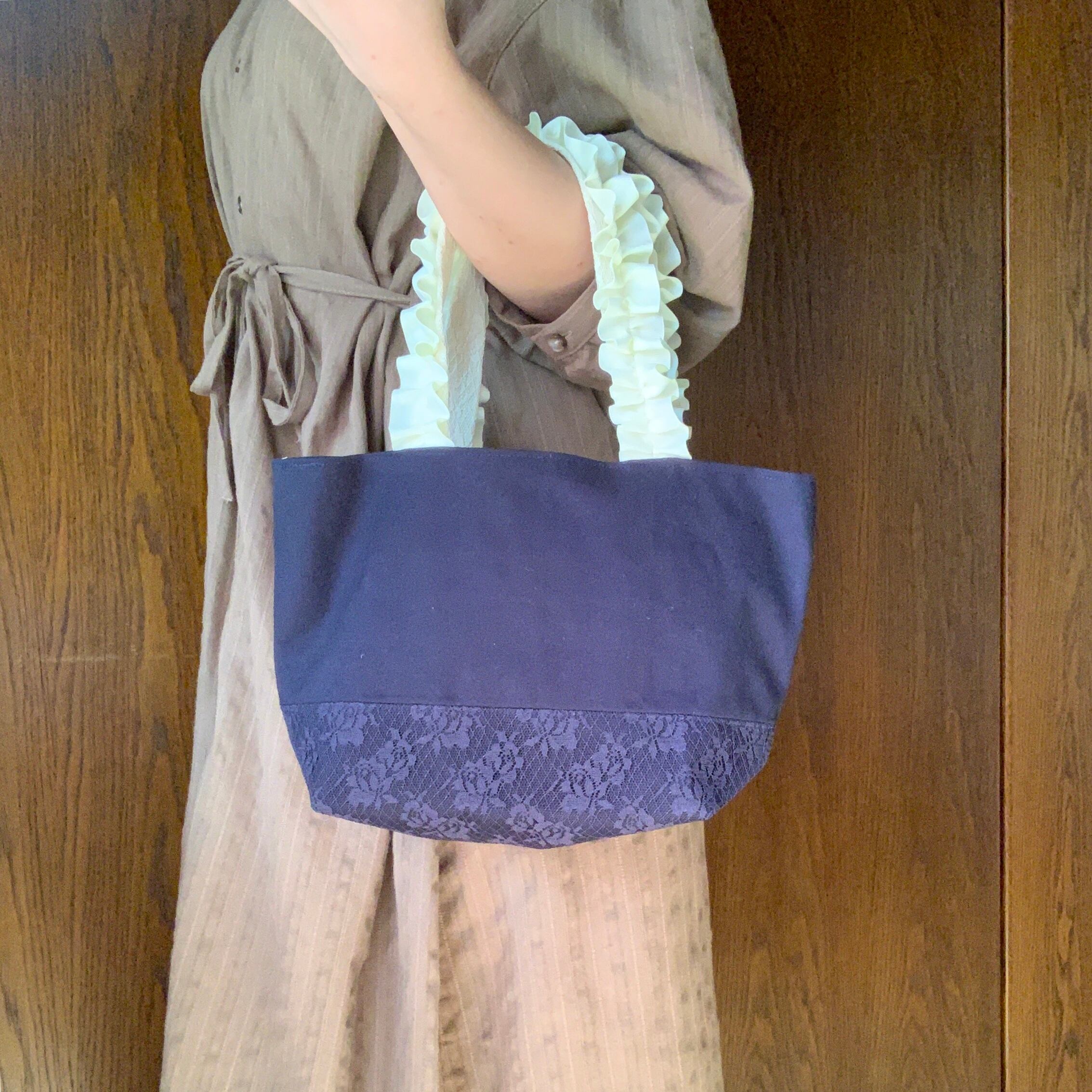 本体のレース切り替えがポイントのフリルハンドルトートバッグ。