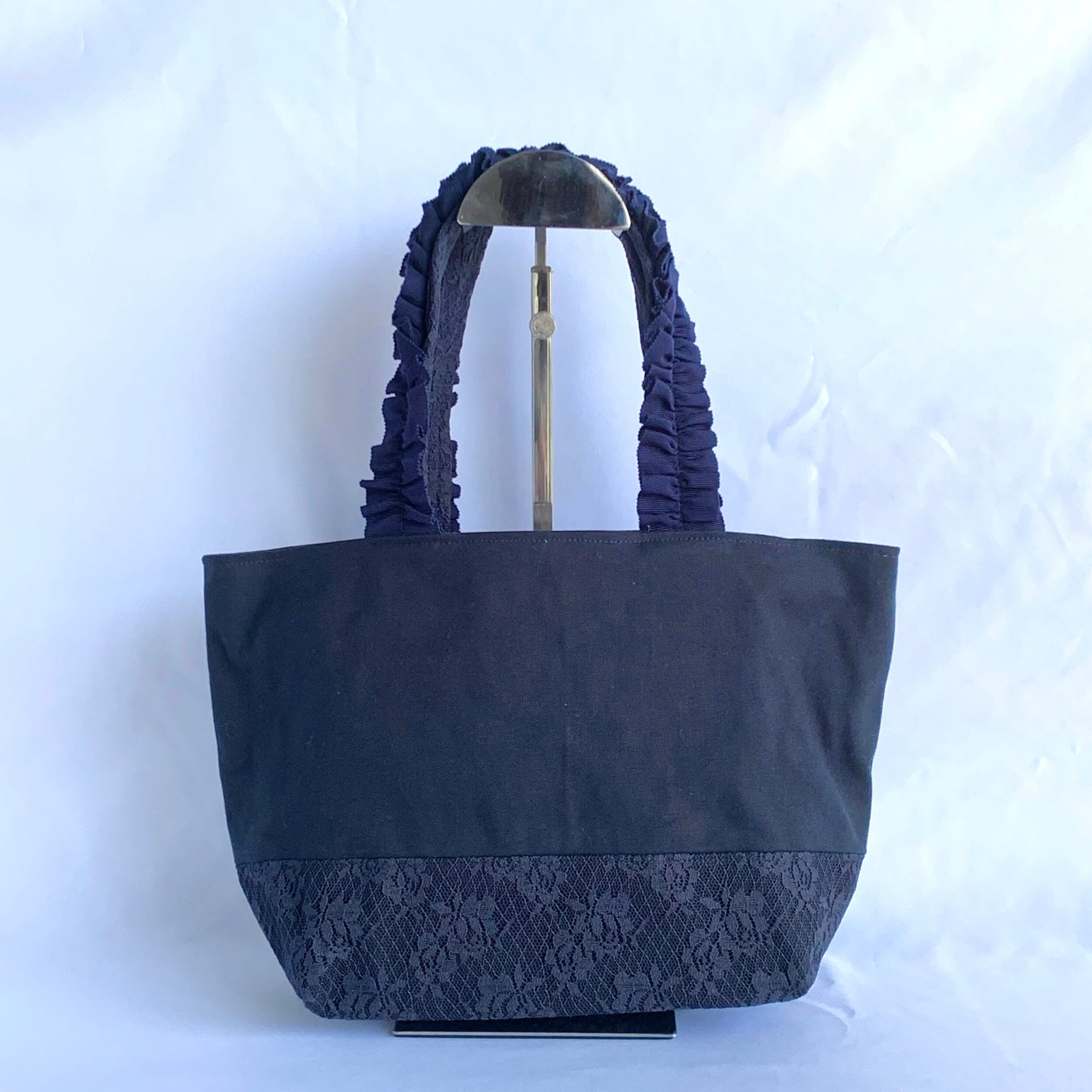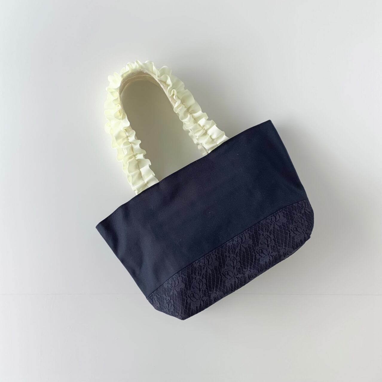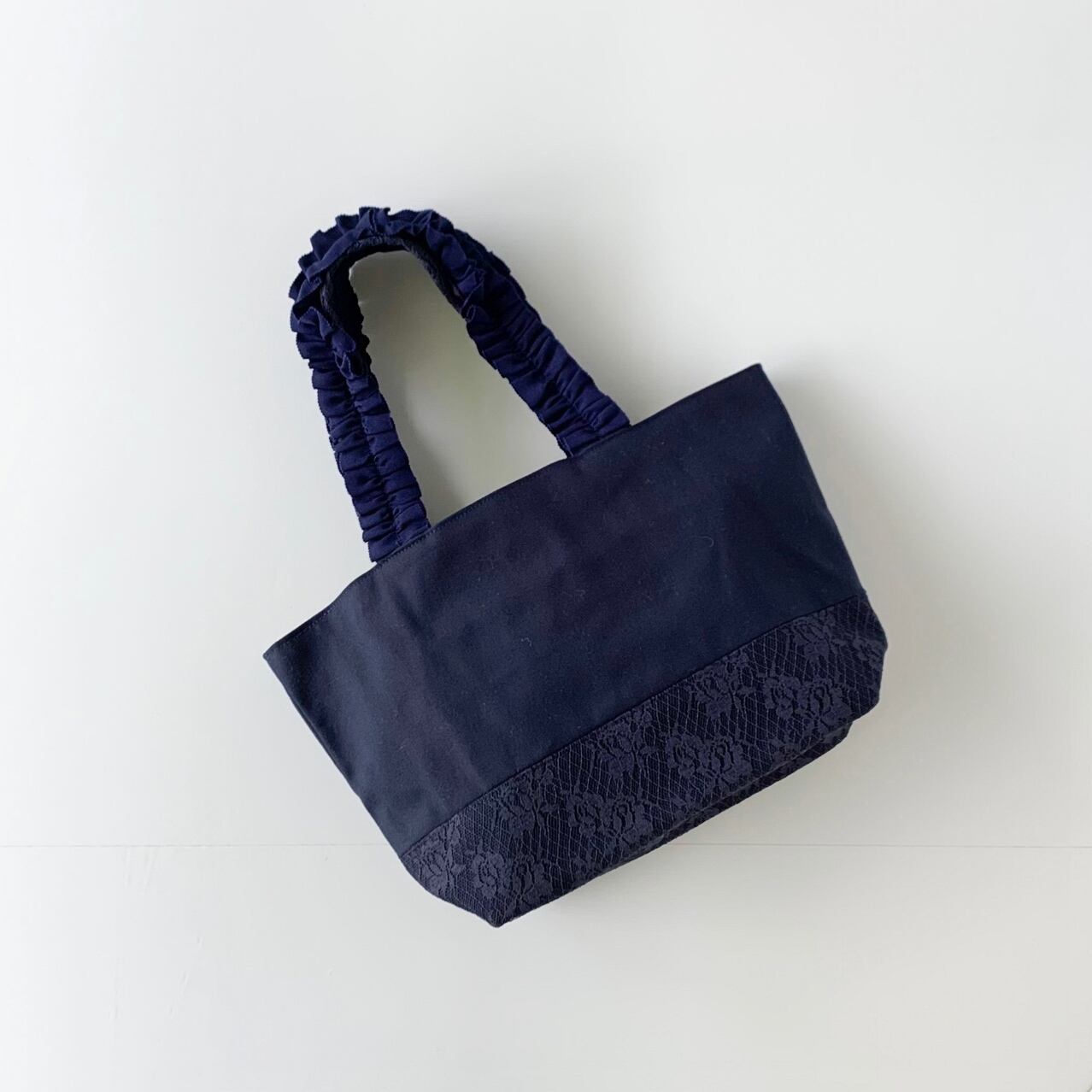 秘密のフリルハンドルトートバッグ/ネイビー系