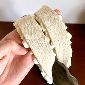 ○持ち手のアクリルベルトにはレースを巻きつけ、フリルのない裏側も可愛くなるように仕上げました。