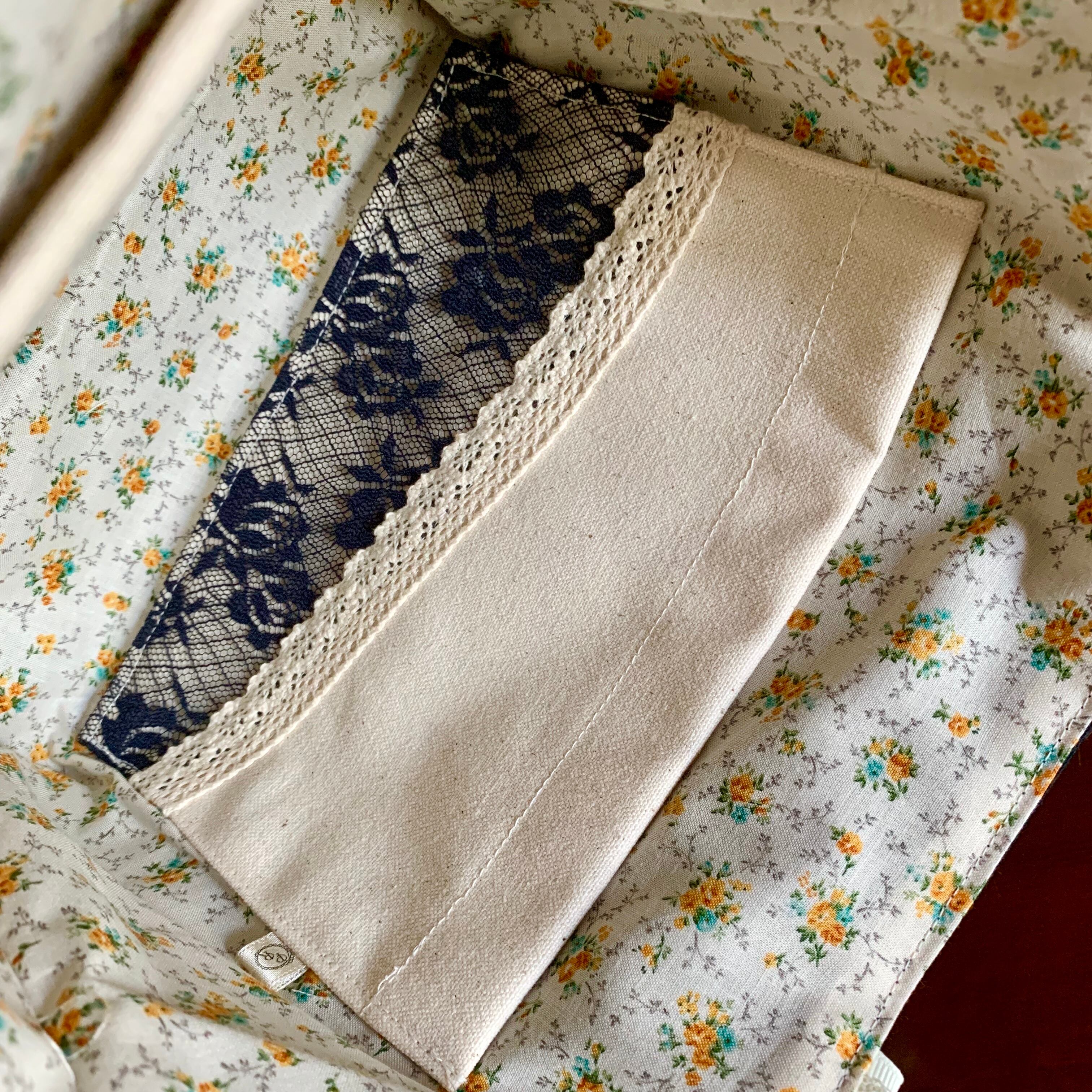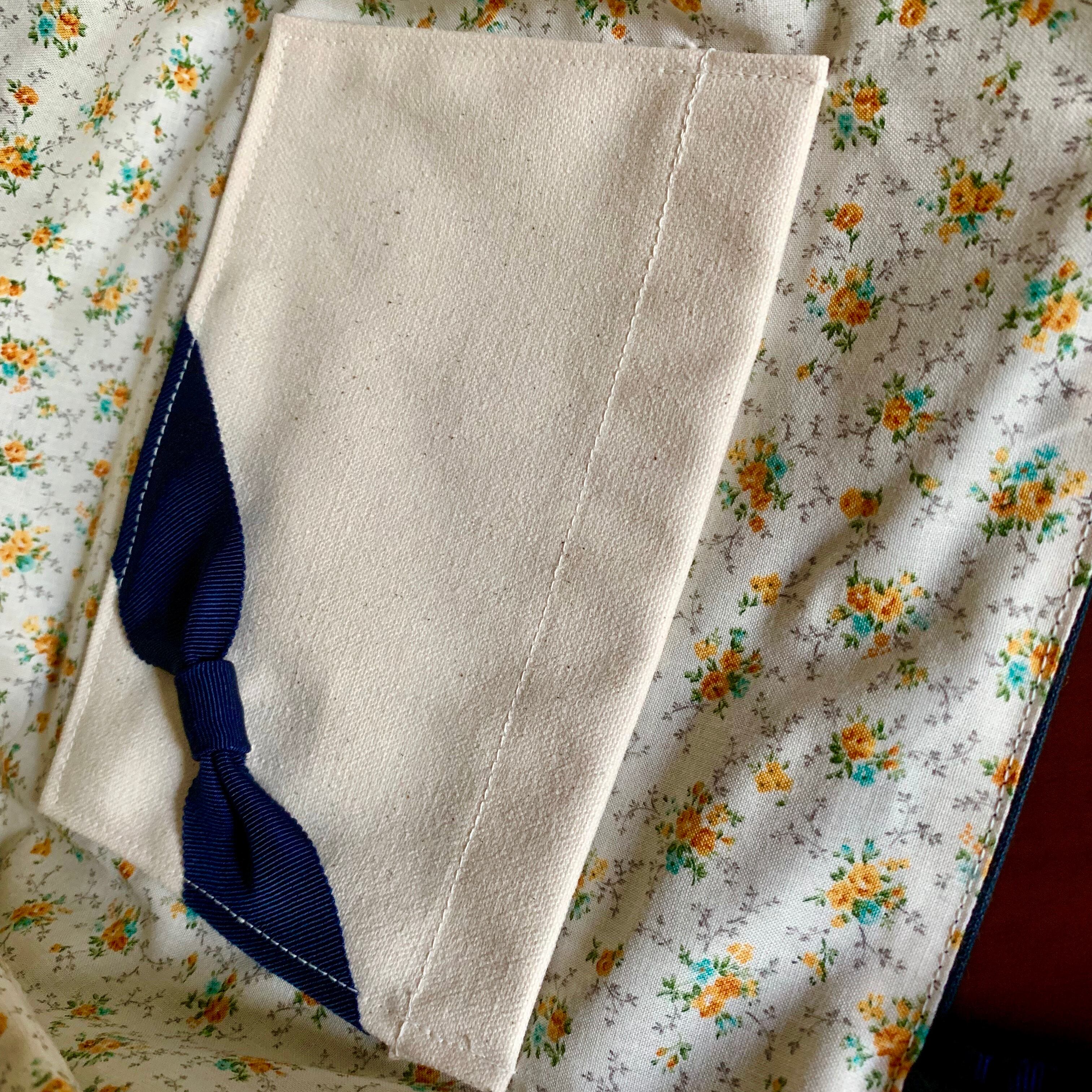 ○本体と同じ11号帆布で作った内ポケットは左右に1つずつ、サイズがひとまわり程違います。携帯やハンカチ、パスケースやタブレット菓子などさっと取り出したいものを入れるのに便利です。