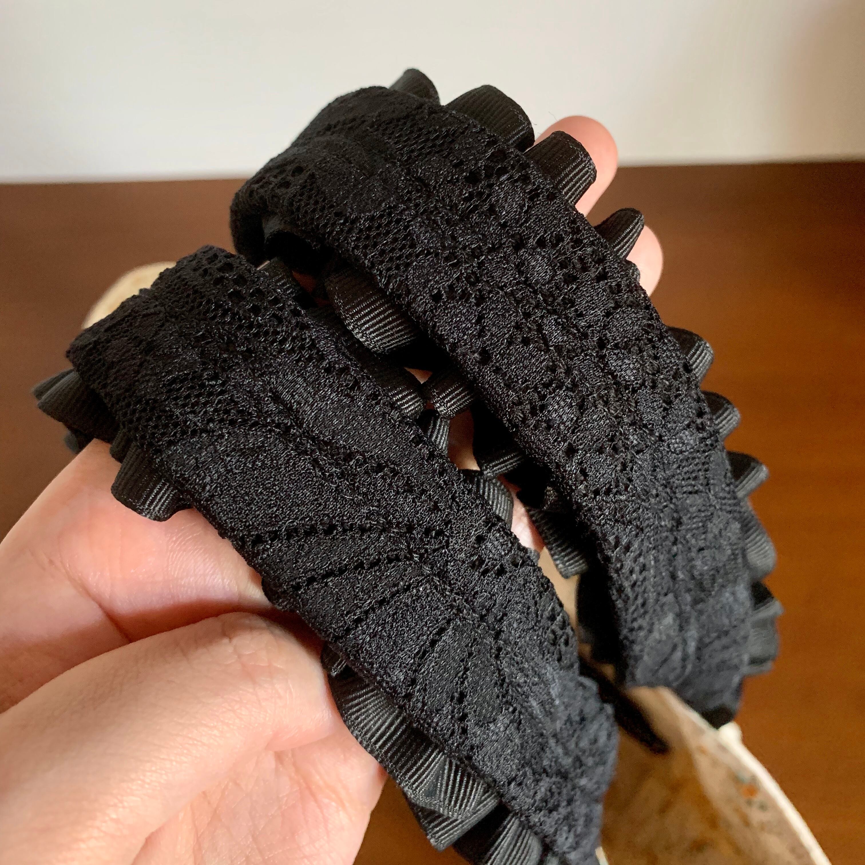 ○持ち手のアクリルベルトにはレースを巻きつけ、フリルのない裏側も可愛くなるように仕上げました。