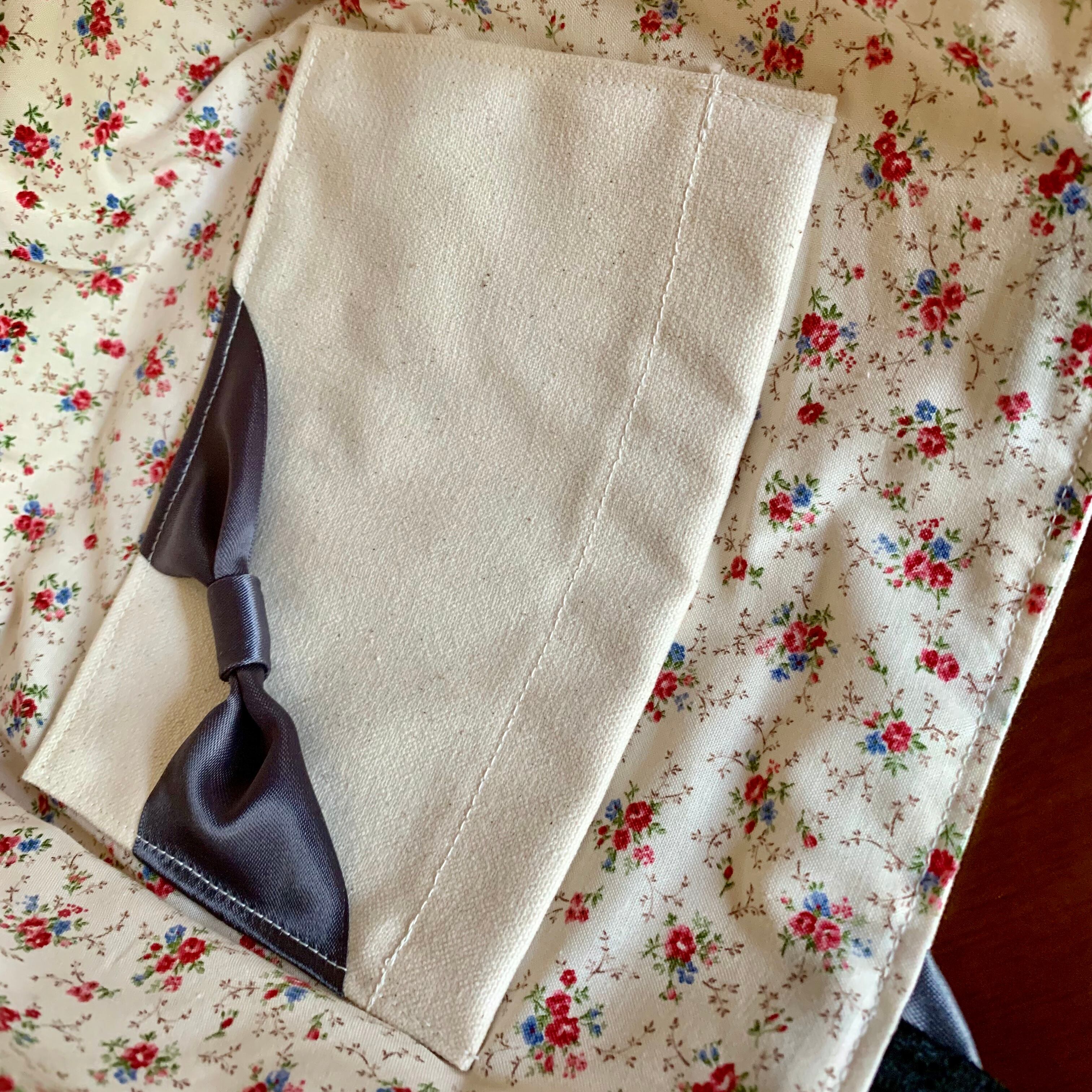 ○本体と同じ11号帆布で作った内ポケットは左右に1つずつ、サイズがひとまわり程違います。携帯やハンカチ、パスケースやタブレット菓子などさっと取り出したいものを入れるのに便利です。