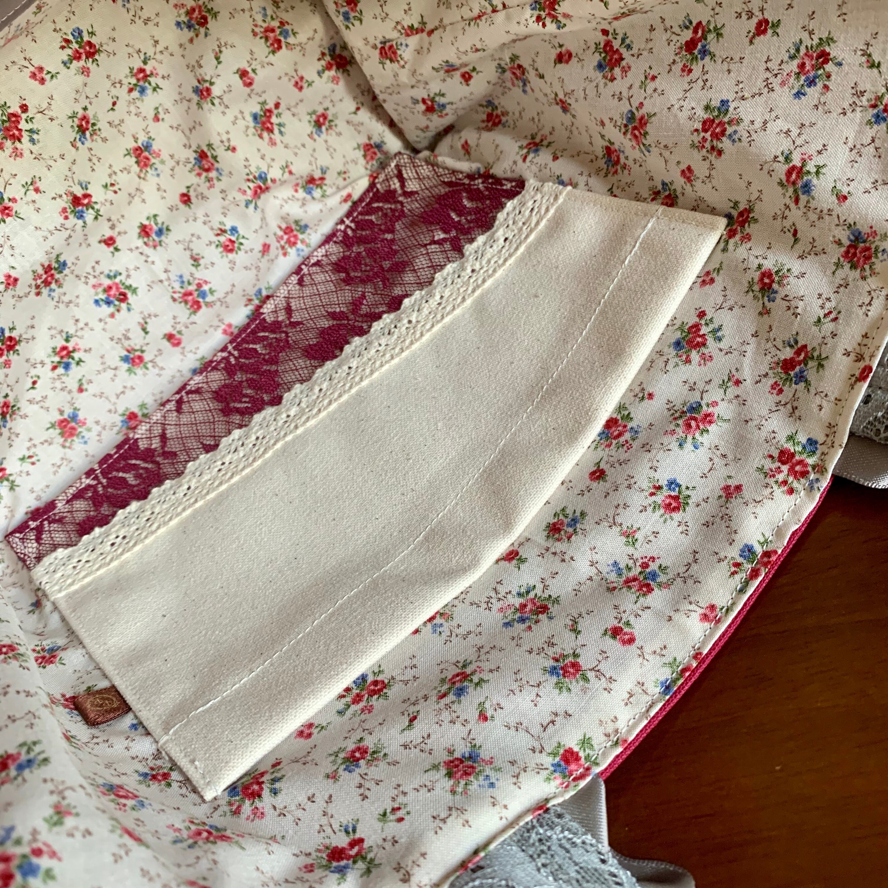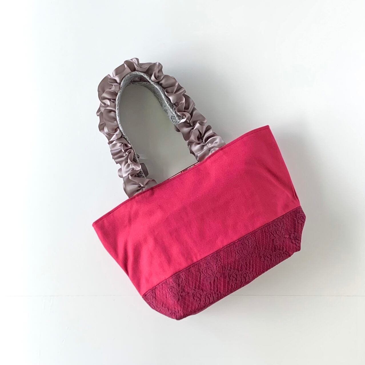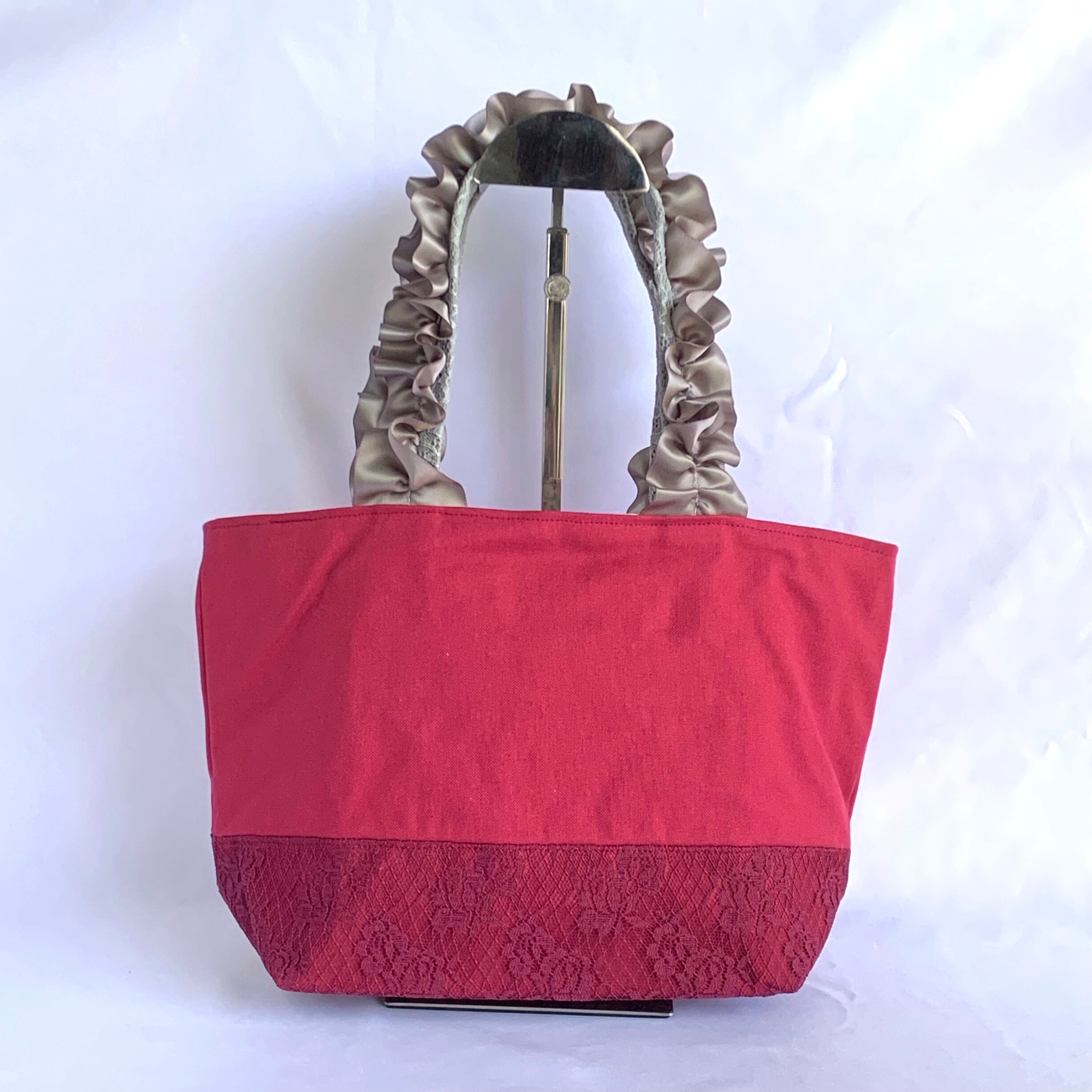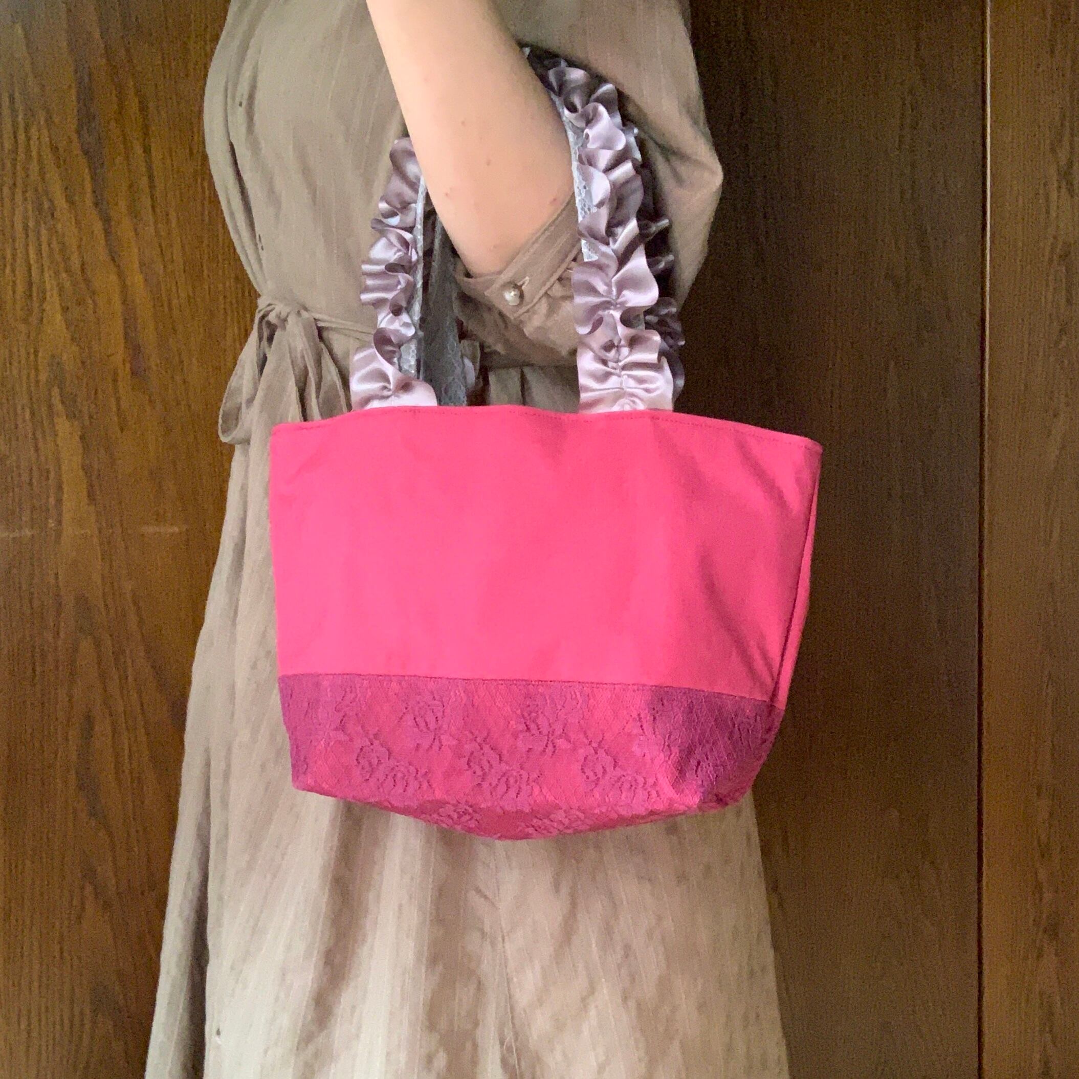 本体のレース切り替えがポイントのフリルハンドルトートバッグ。