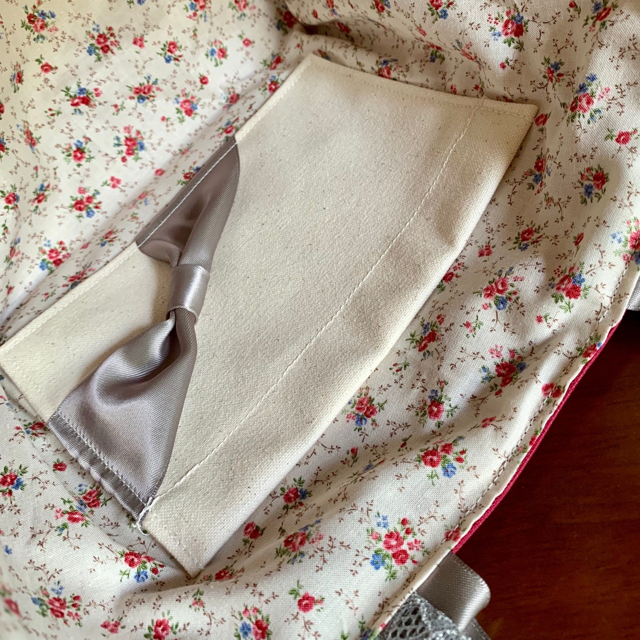 秘密のフリルハンドルトートバッグ/ライトグレー×ラズベリーレッド