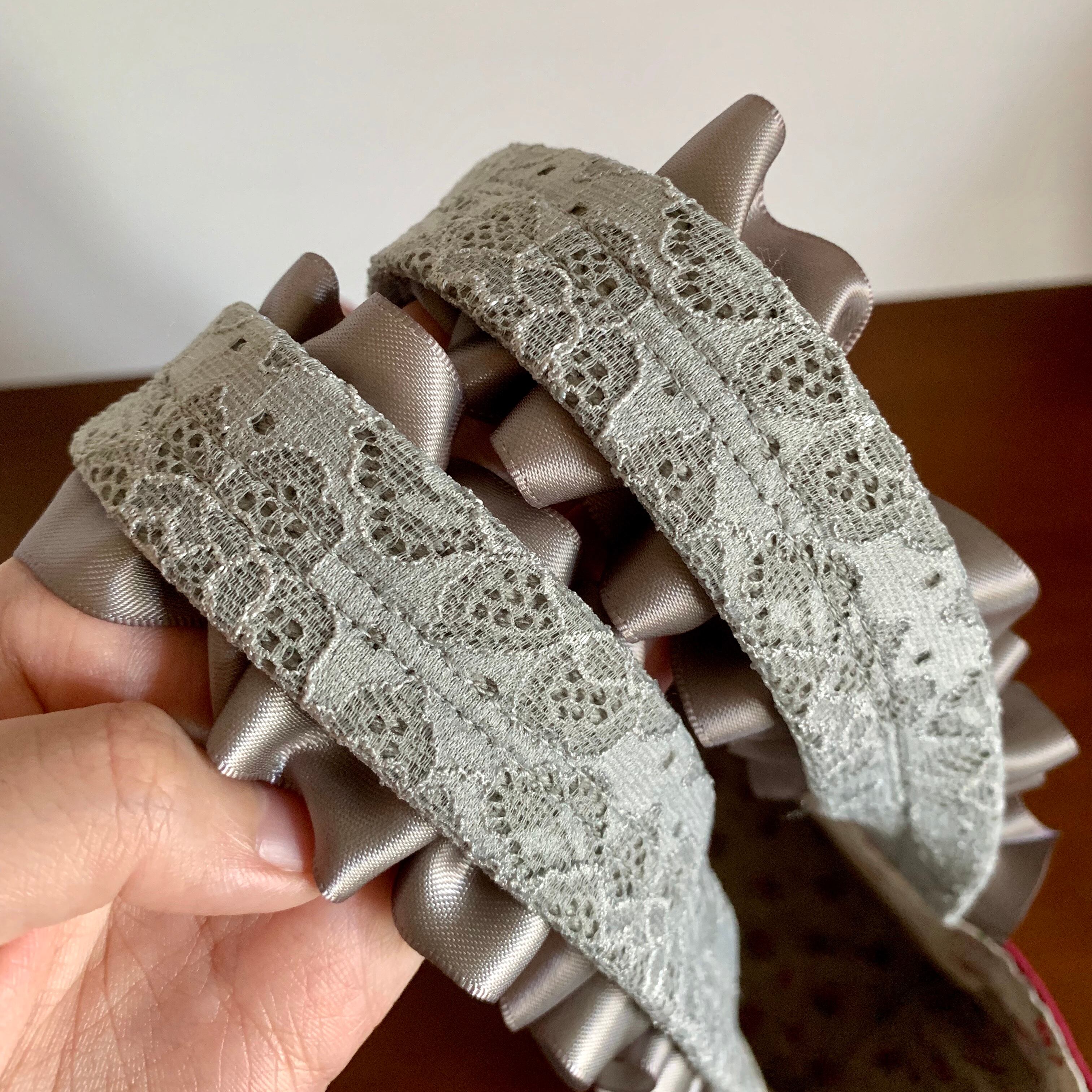 ○本体下部分が切り替えレースになっており、本体と同色レースで主張し過ぎないことで甘くなりすぎないようにしました。