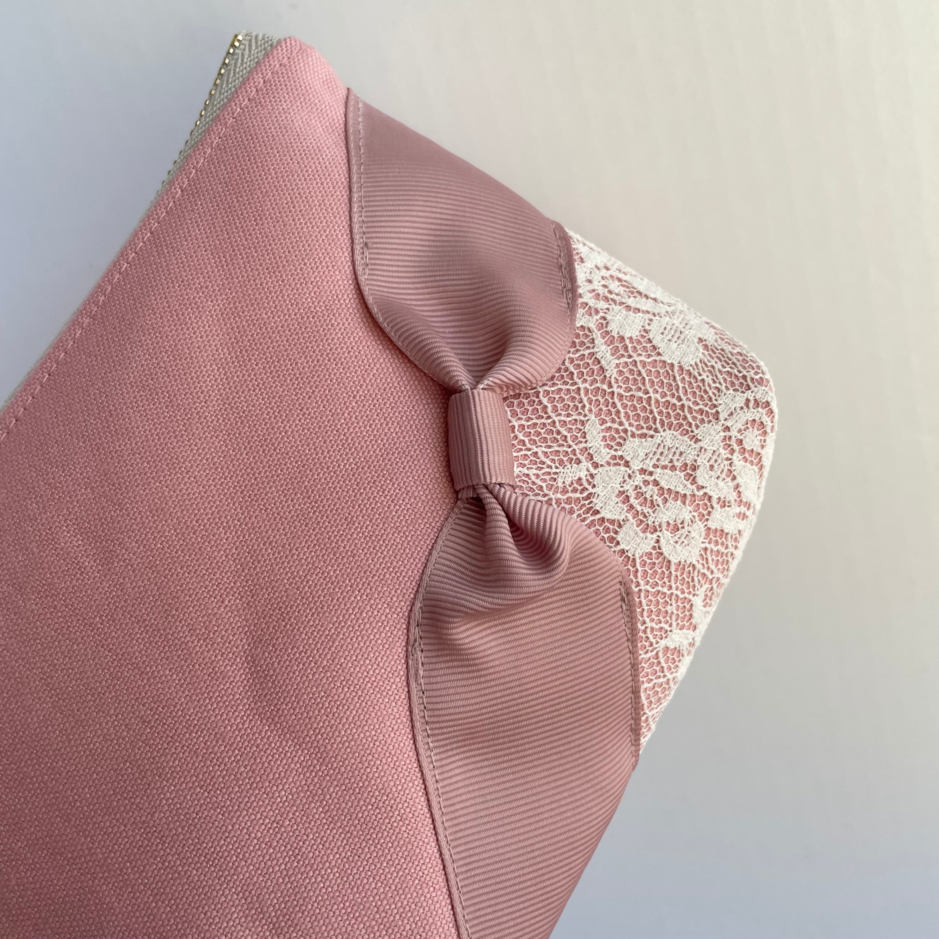 大人のリボンポーチ、カラーはミスティピンクです。