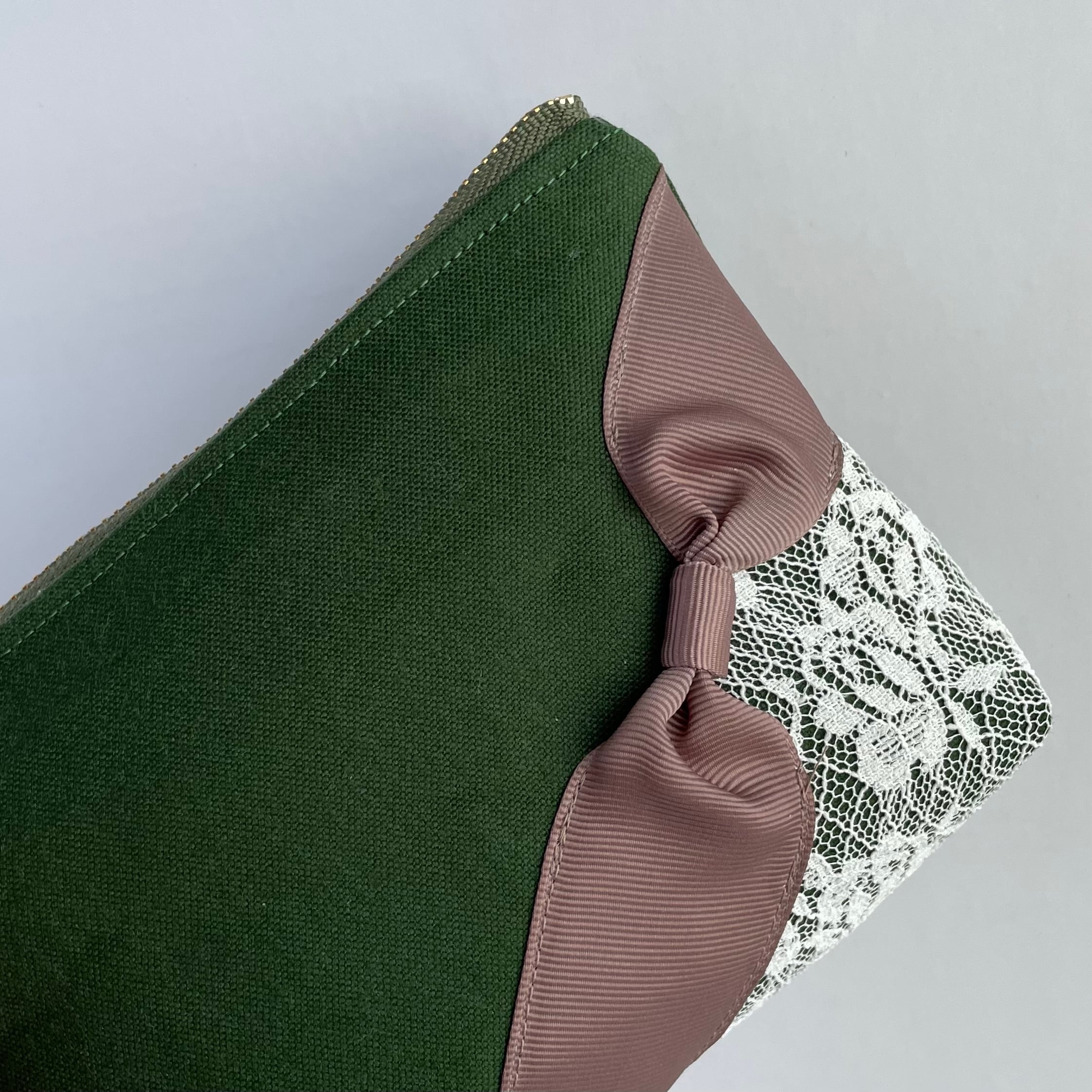 リボンは主張のし過ぎないように工夫し、女性の心をくすぐりながらも子供っぽくなり過ぎない、大人の雰囲気のリボンポーチに仕上げました。