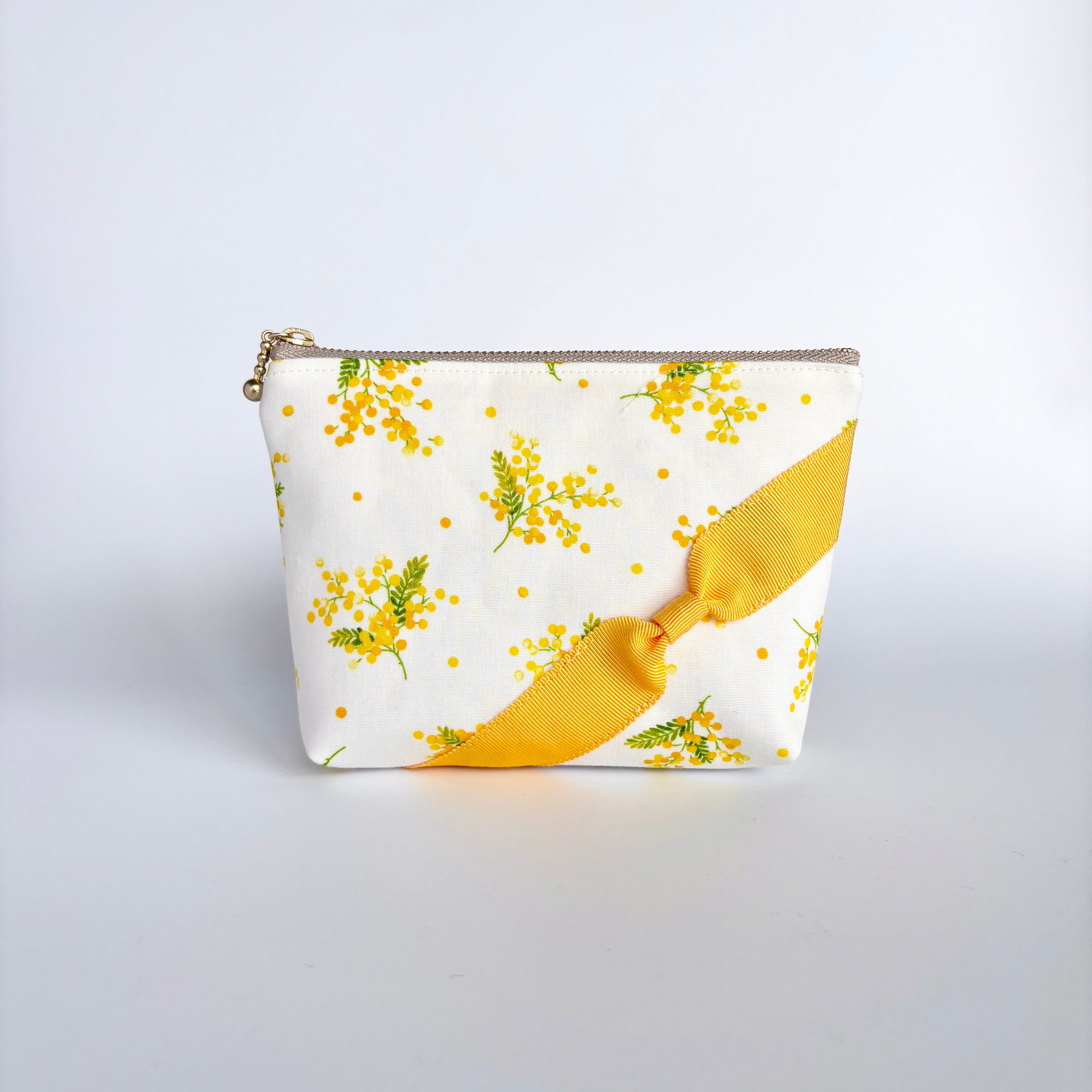 大人のリボンポーチ(ミモザ柄B)
