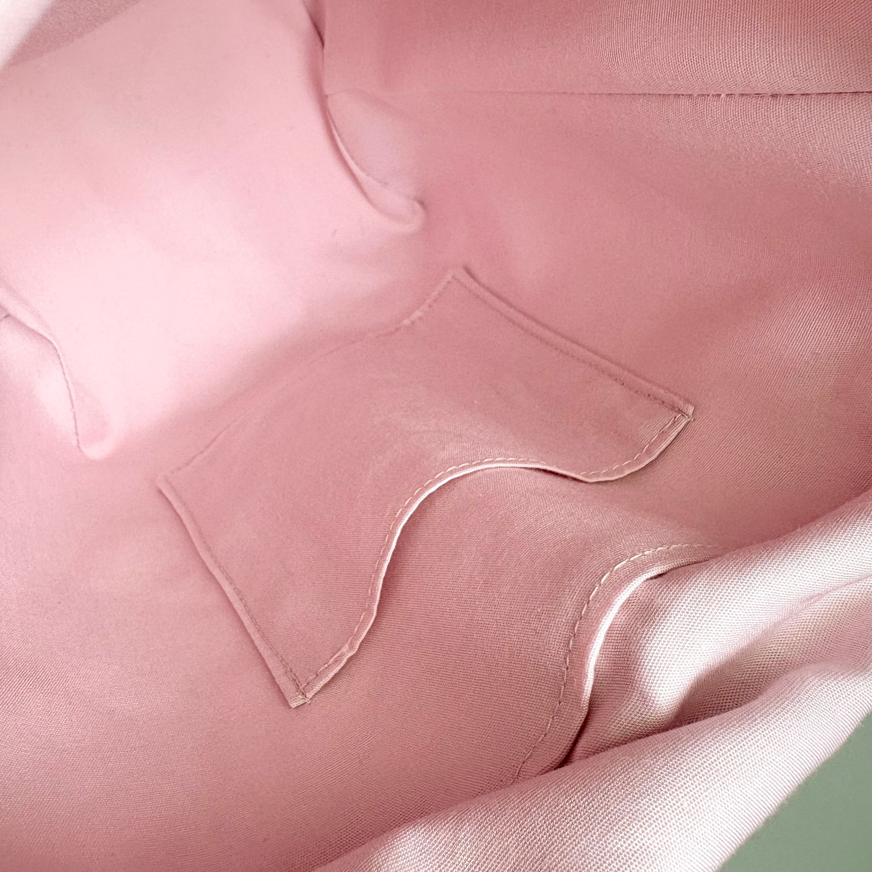 ポケットは片面にはリボンを、片面には生地そのものの柄を楽しめるようにしました。※柄のみの方にスナップボタンあり